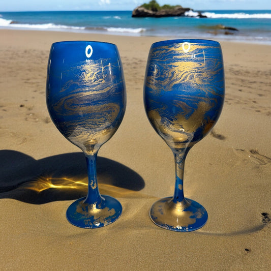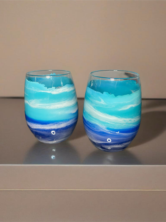 Blue Waves Wine Glasses and Drinkware-Handmade
