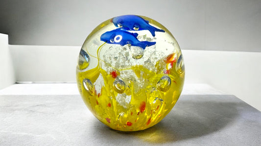 Blue Dolphin and Coral Glass Paperweight-Multiple Colors