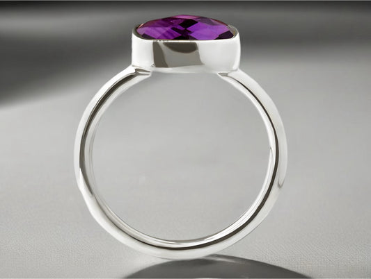 Amethyst Cushion Cut Solitaire Ring- 925 Sterling Silver