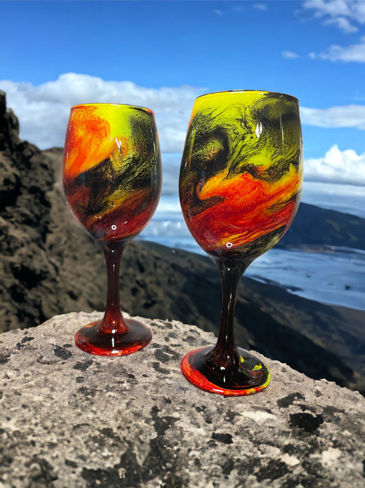 Red Swirl Swirl Wine Glasses and Drinkware-Handmade
