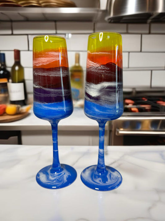 Blue Waves Wine Glasses and Drinkware-Handmade