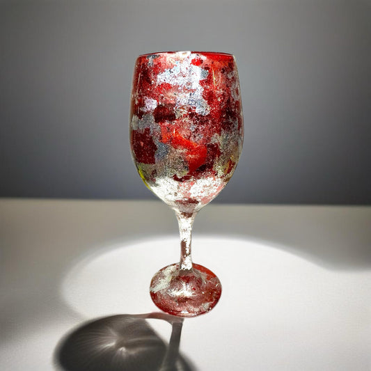 Red and Gold Flake Holiday Wine Glass & Drinkware-Handmade