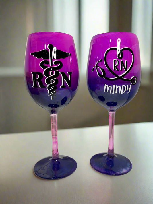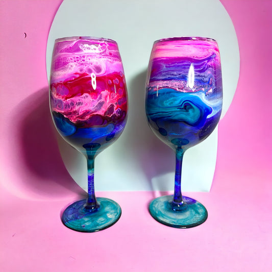 Pink Purple and Blue Wine Glasses and Drinkware-Handmade