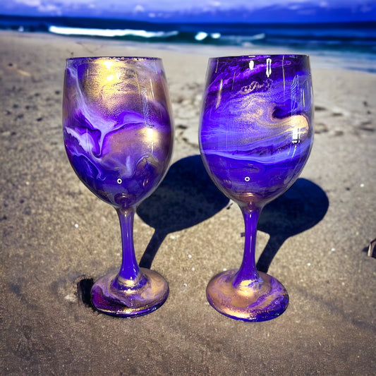Purple and Gold Swirl Wine Glasses and Drinkware-Handmade
