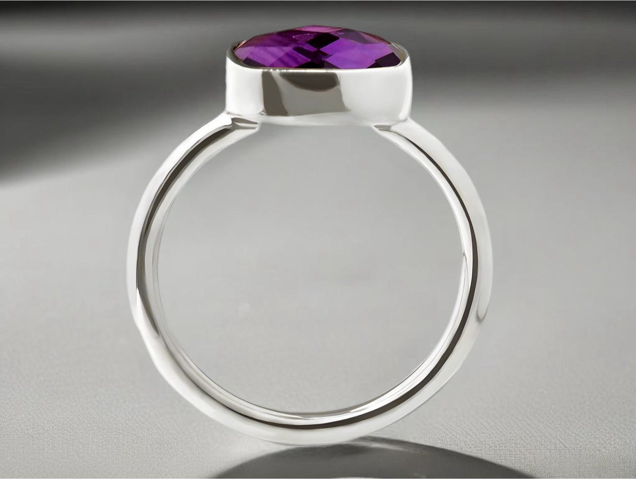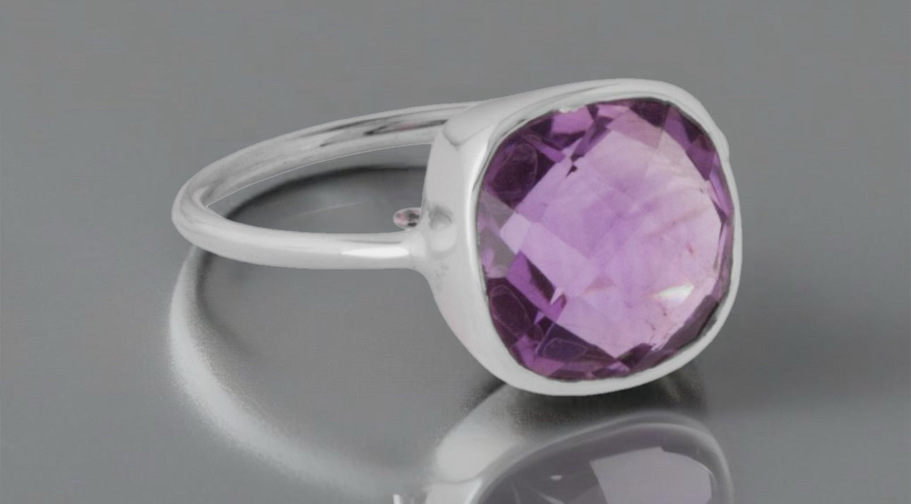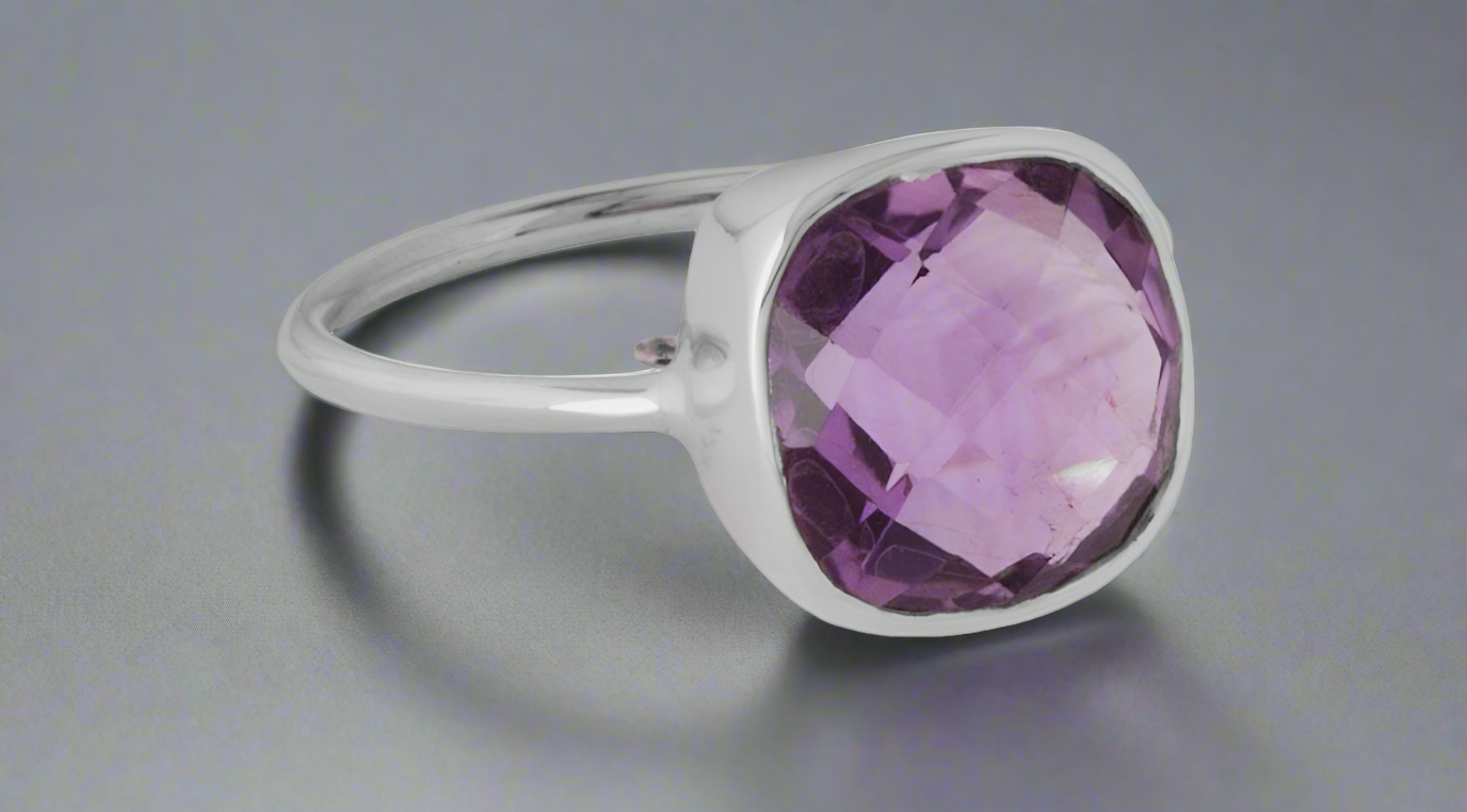 Amethyst Cushion Cut Solitaire Ring handcrafted in 925 Sterling Silver. Single Princess cut genuine Amethyst.