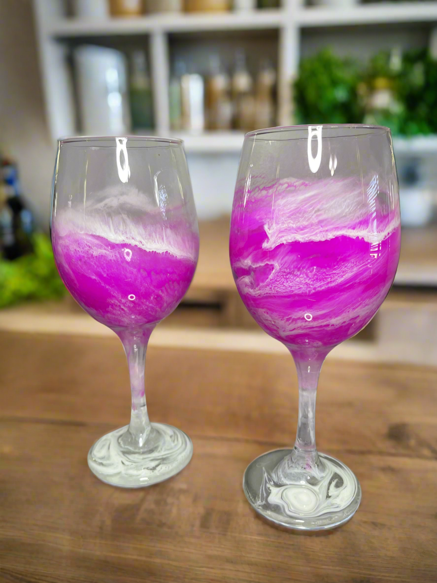 Hot Pink and White Wine Glasses and Drinkware-Handmade