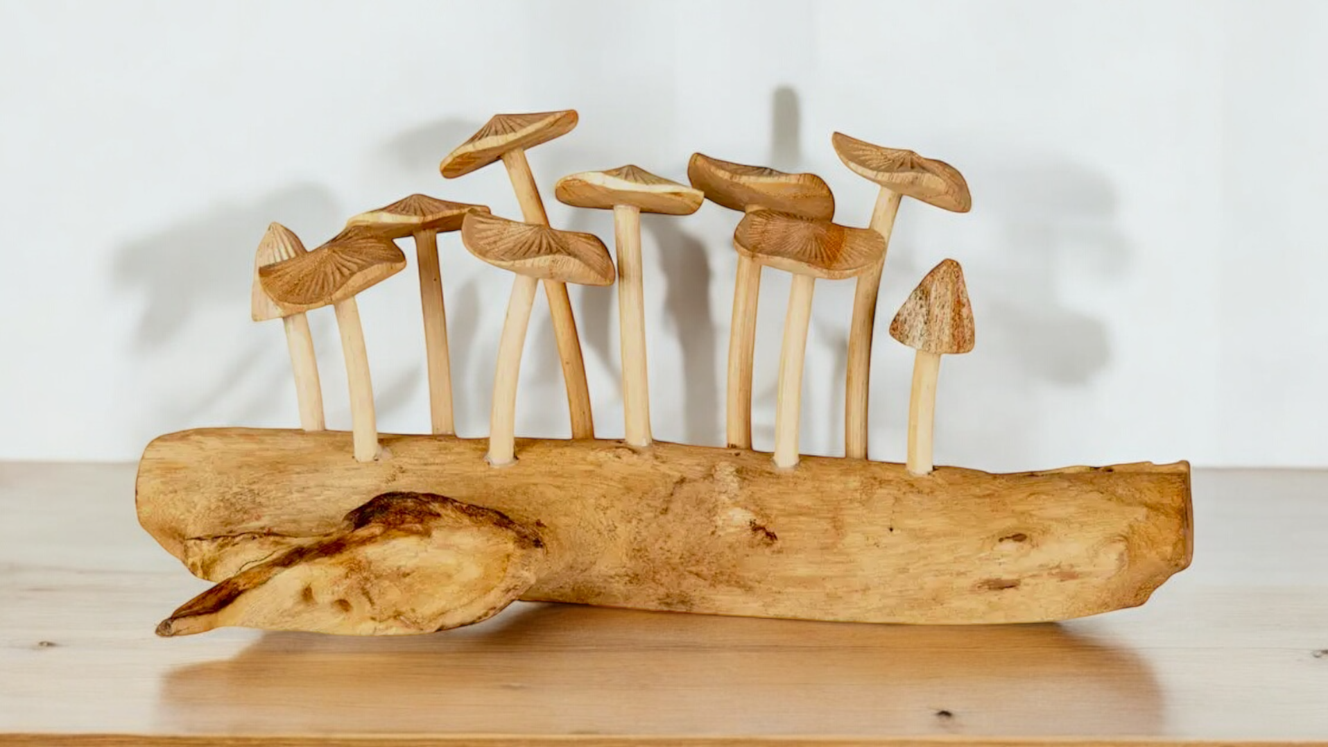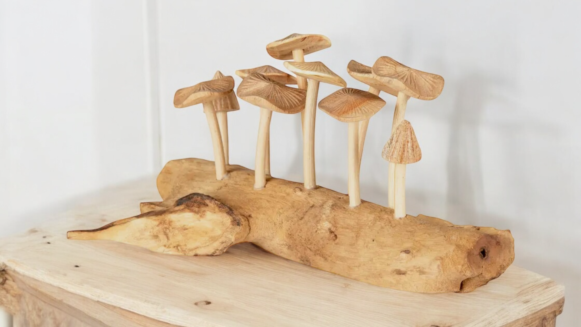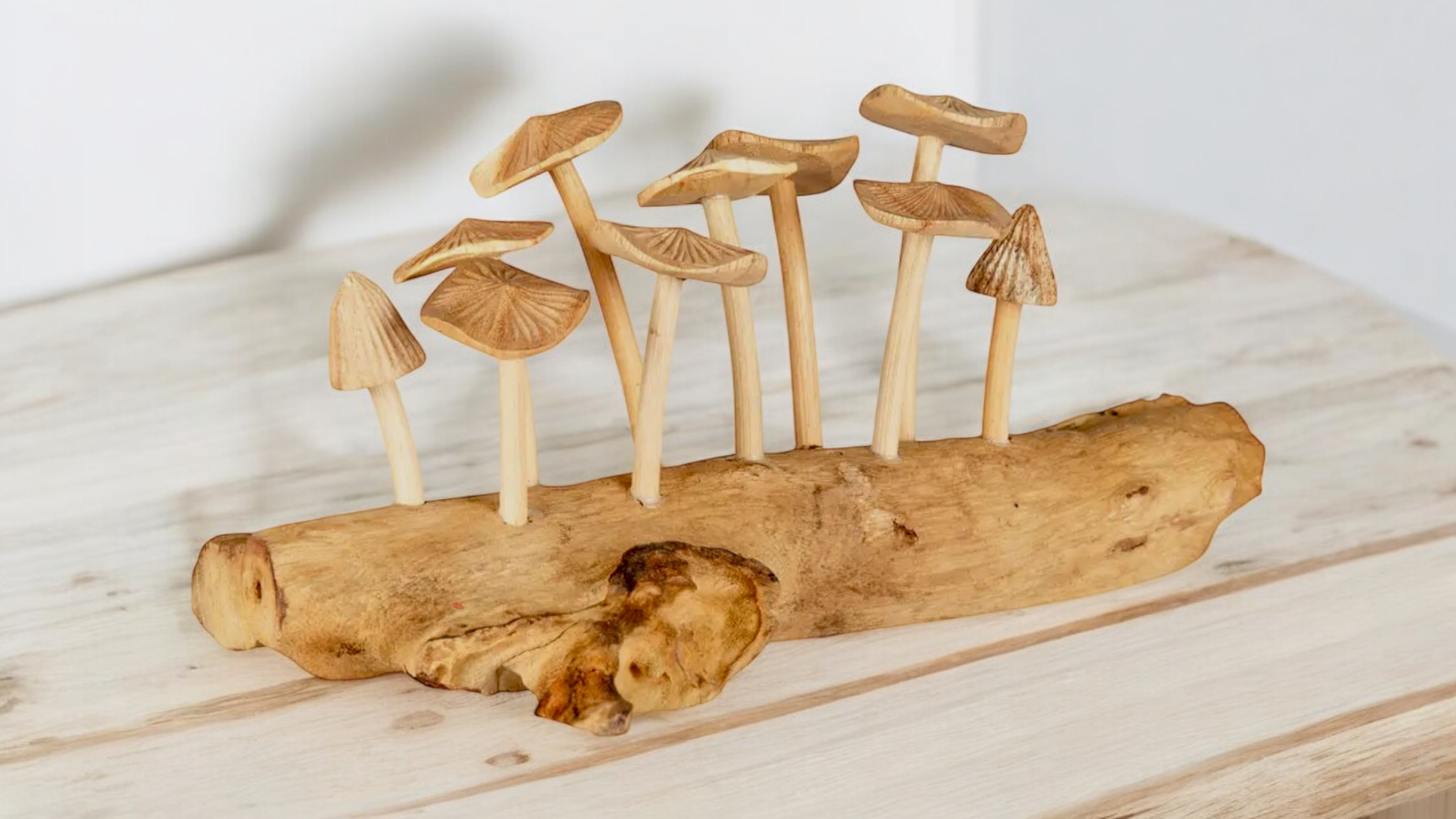 Get your hands on a charming addition to your home decor - our Hand Carved Wooden Mushroom Sculpture! This unique piece adds a playful touch to any space with its whimsical design. Each mushroom is skillfully hand carved, making each sculpture one of a kind. Bring a touch of nature indoors with this delightful mushroom sculpture.