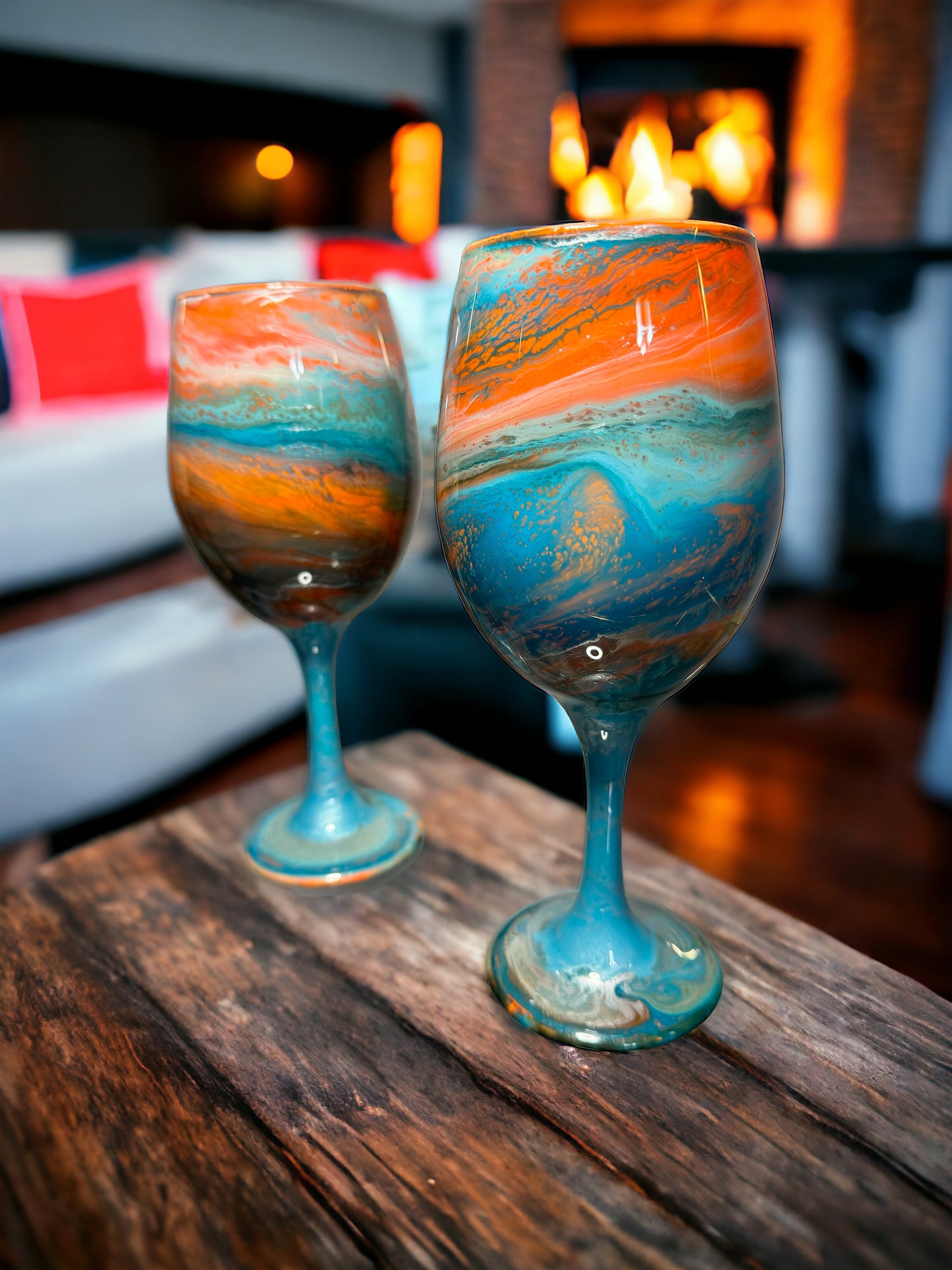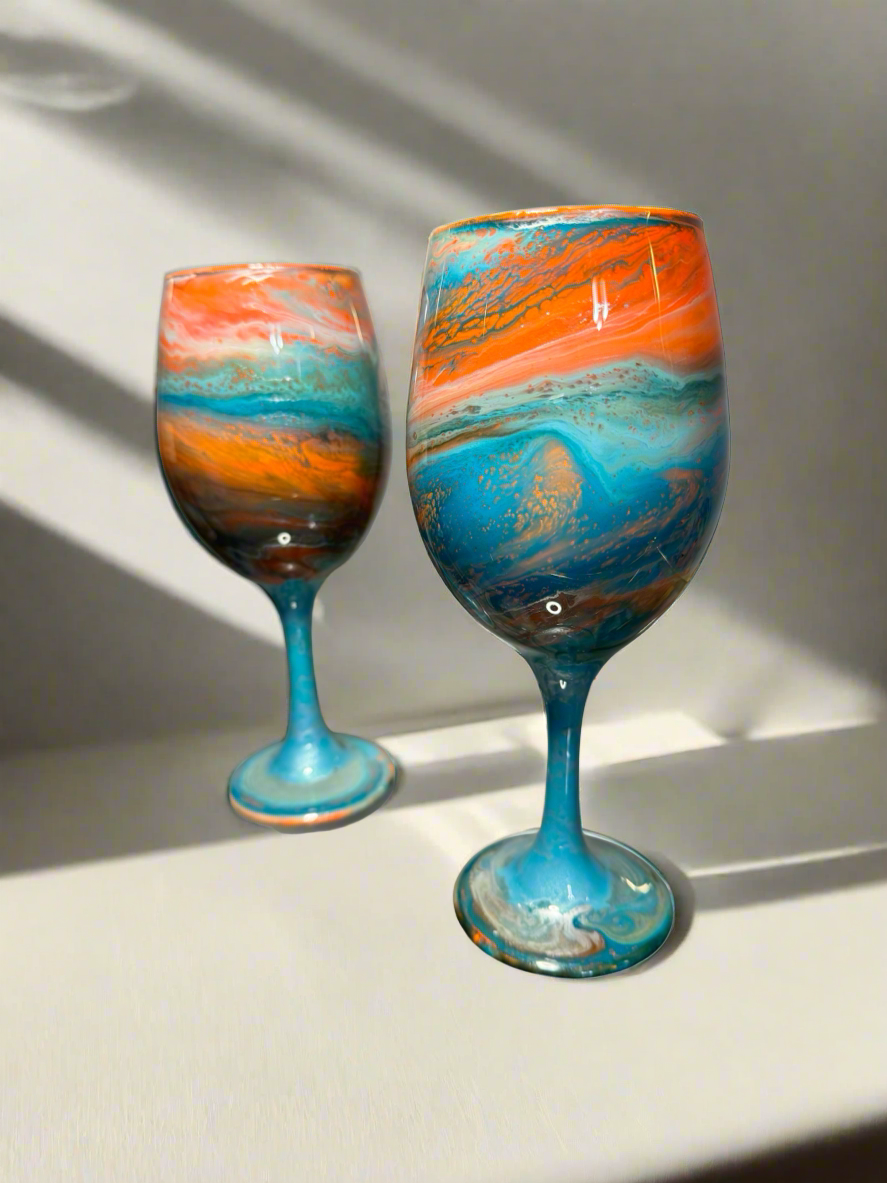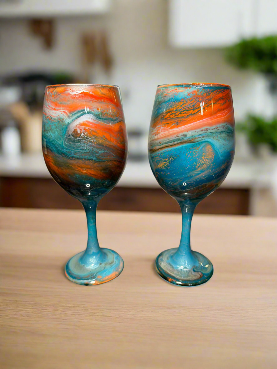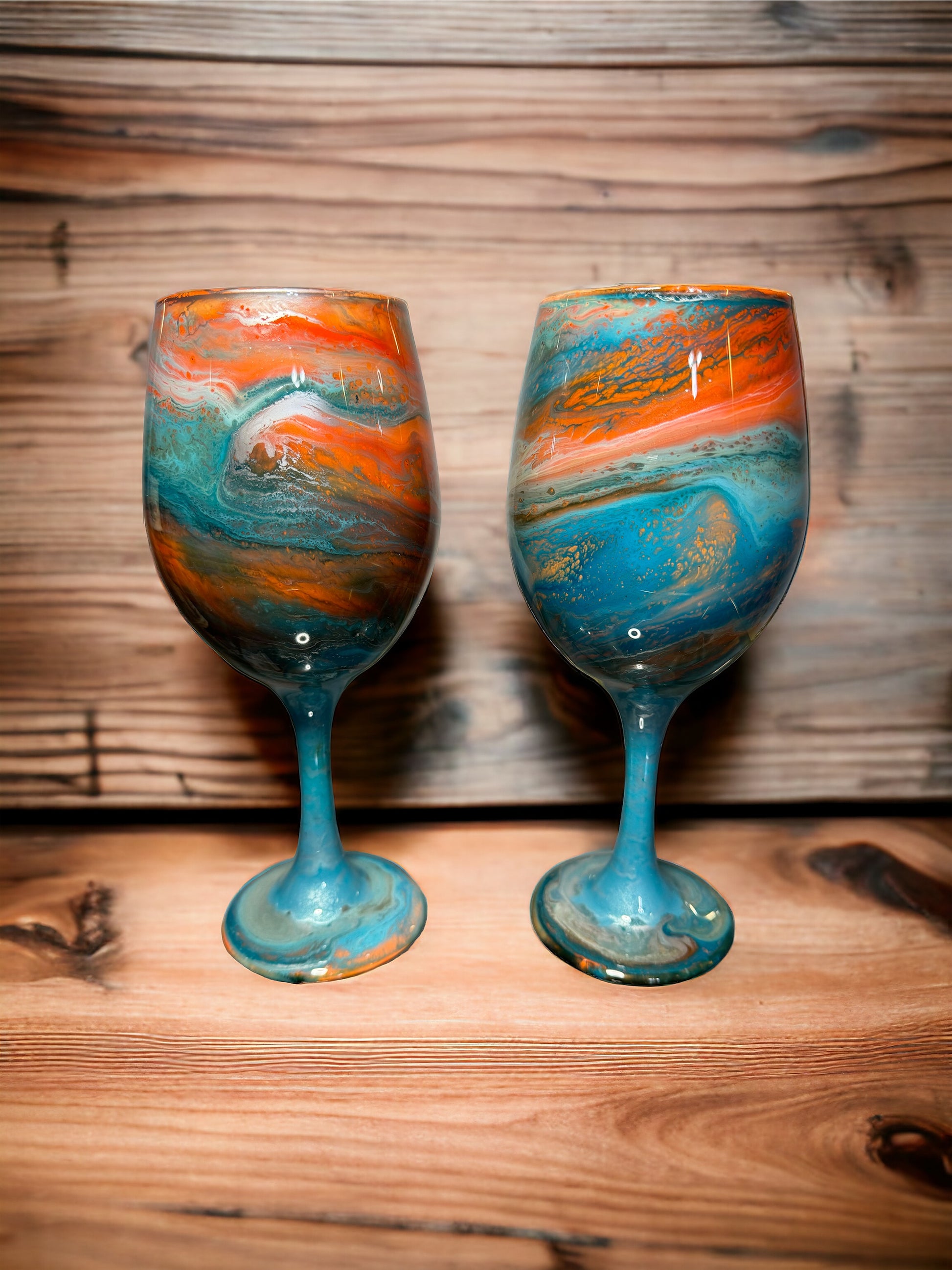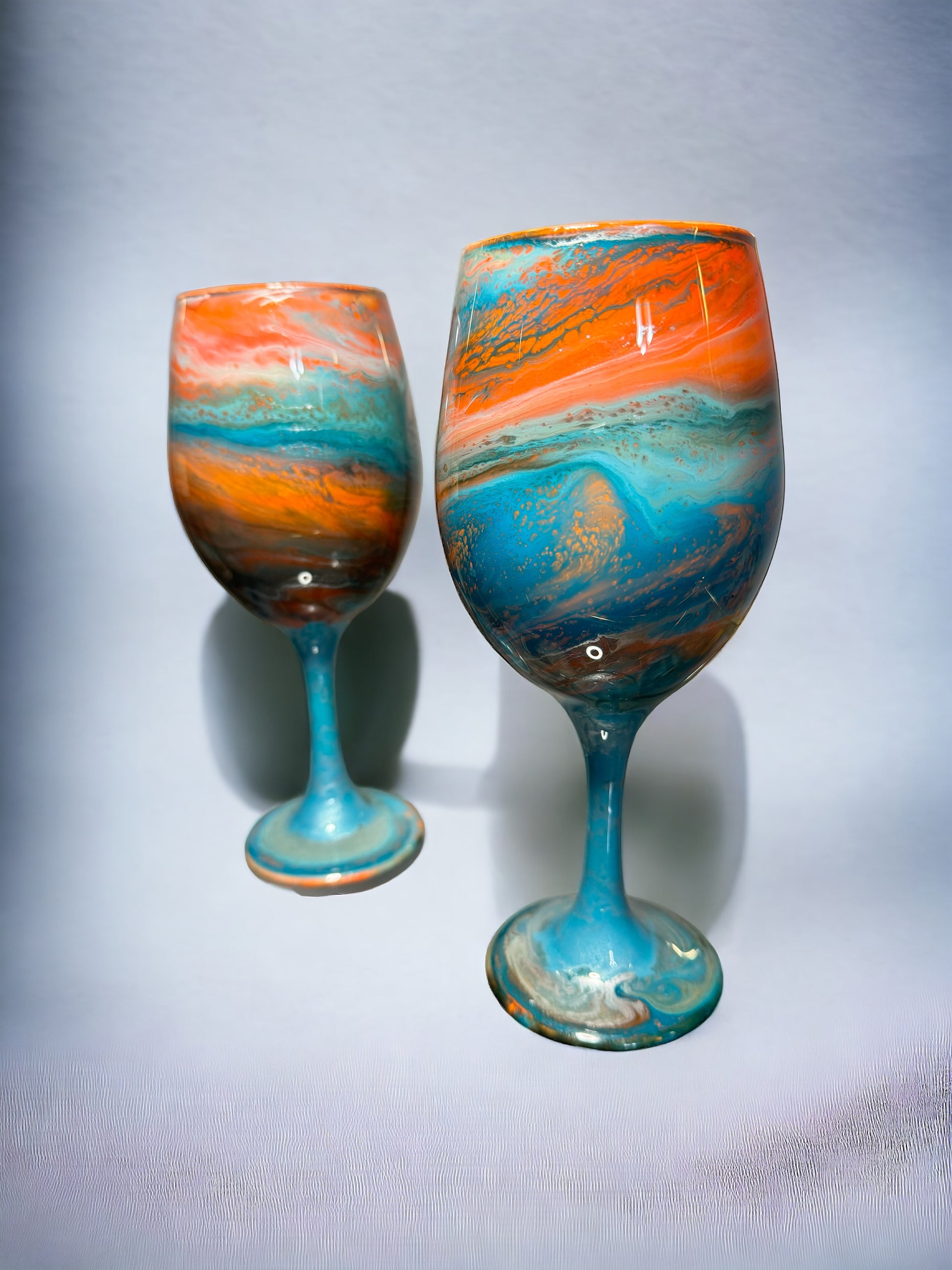 Orange and Turquoise Wine Glasses and Drinkware-Handmade