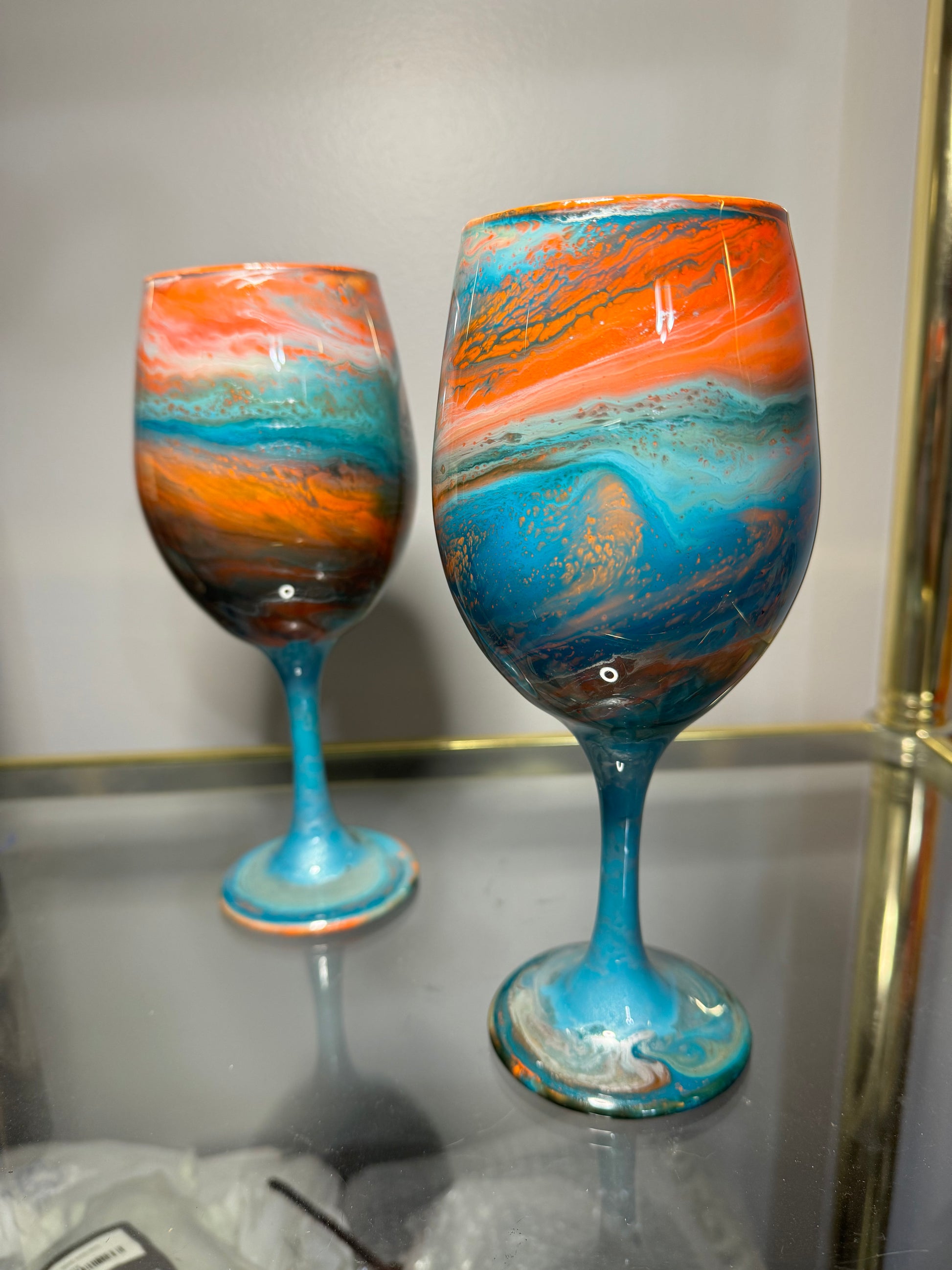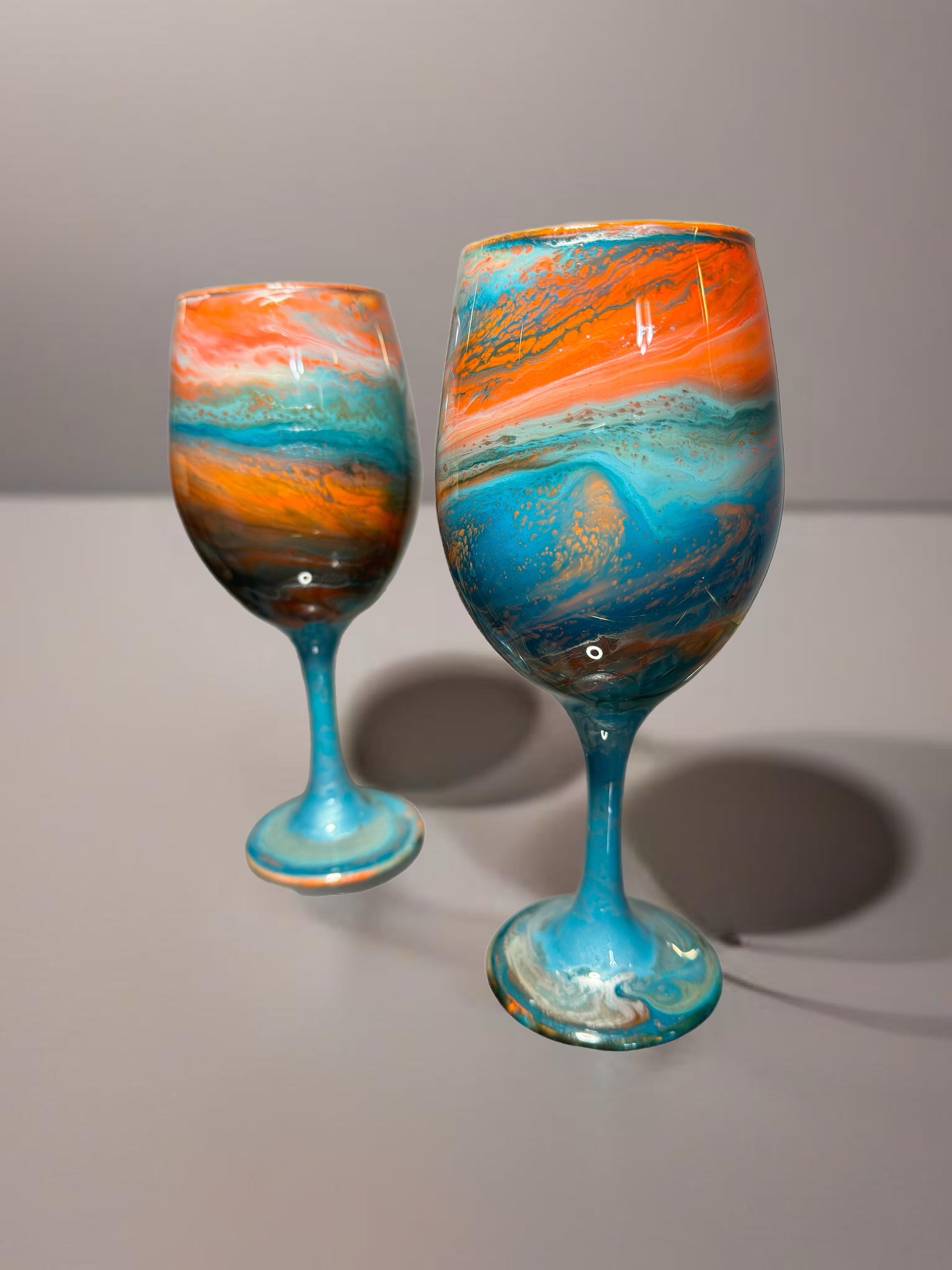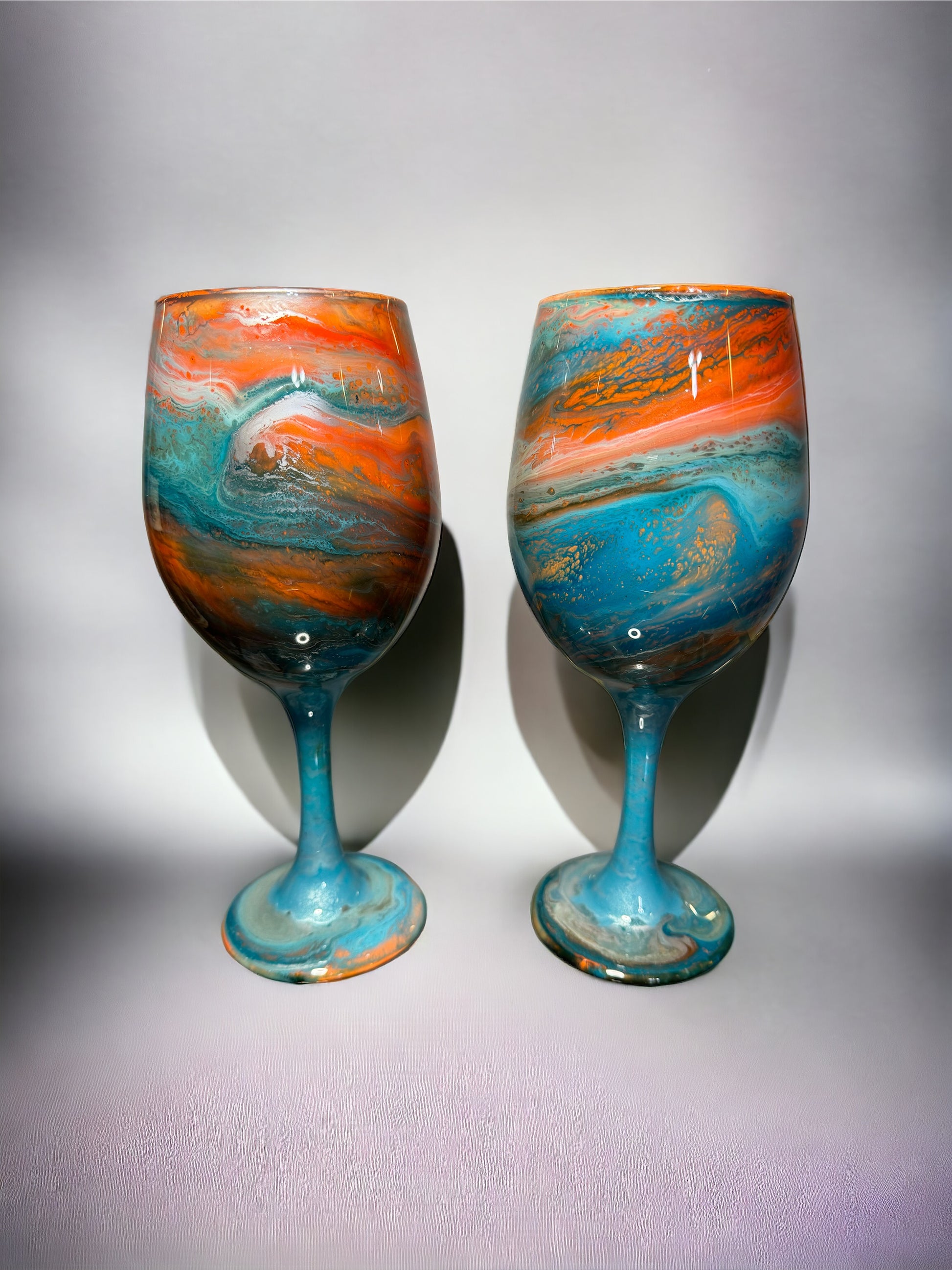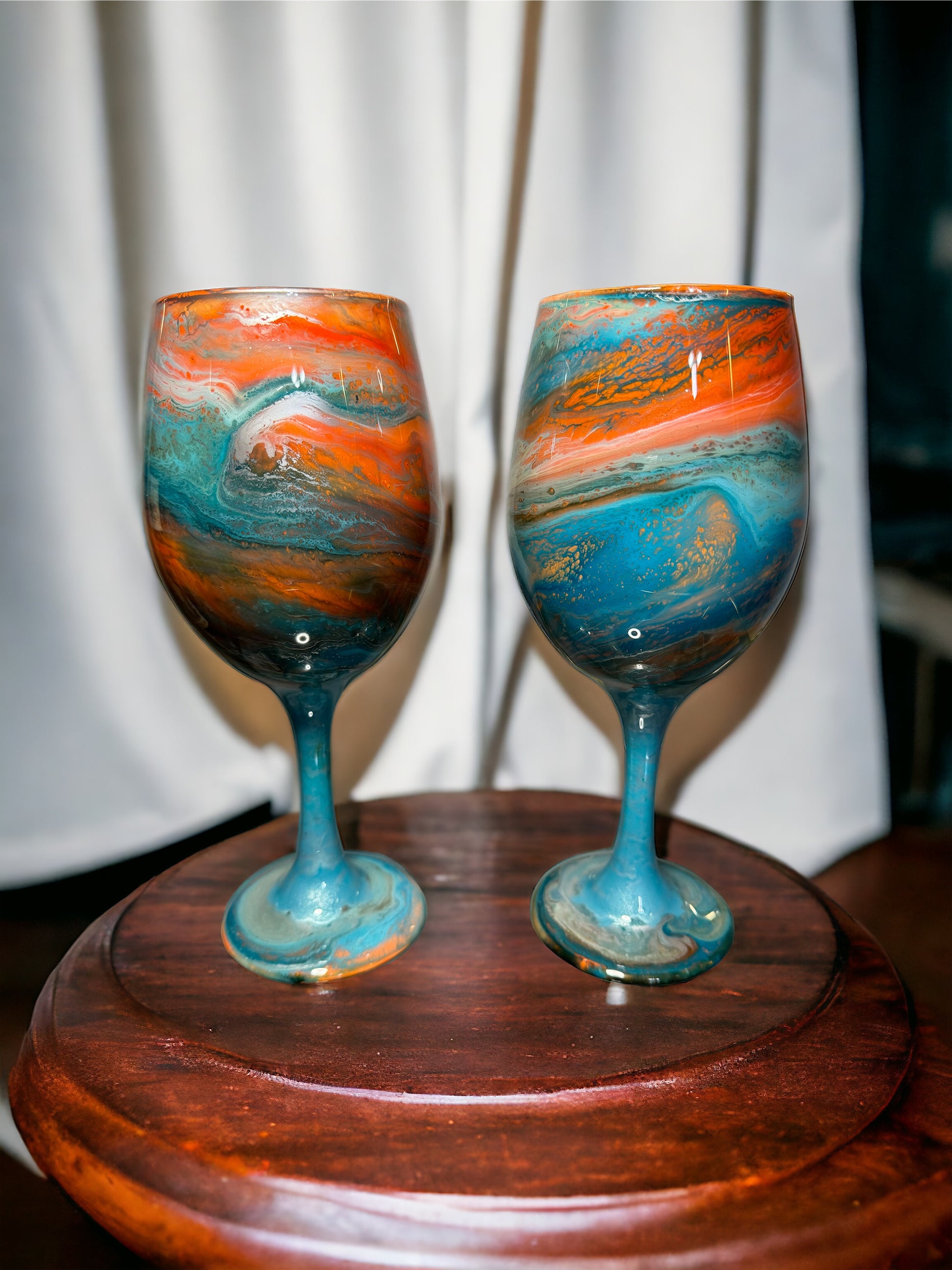 Orange and Turquoise Wine Glasses and Drinkware-Handmade