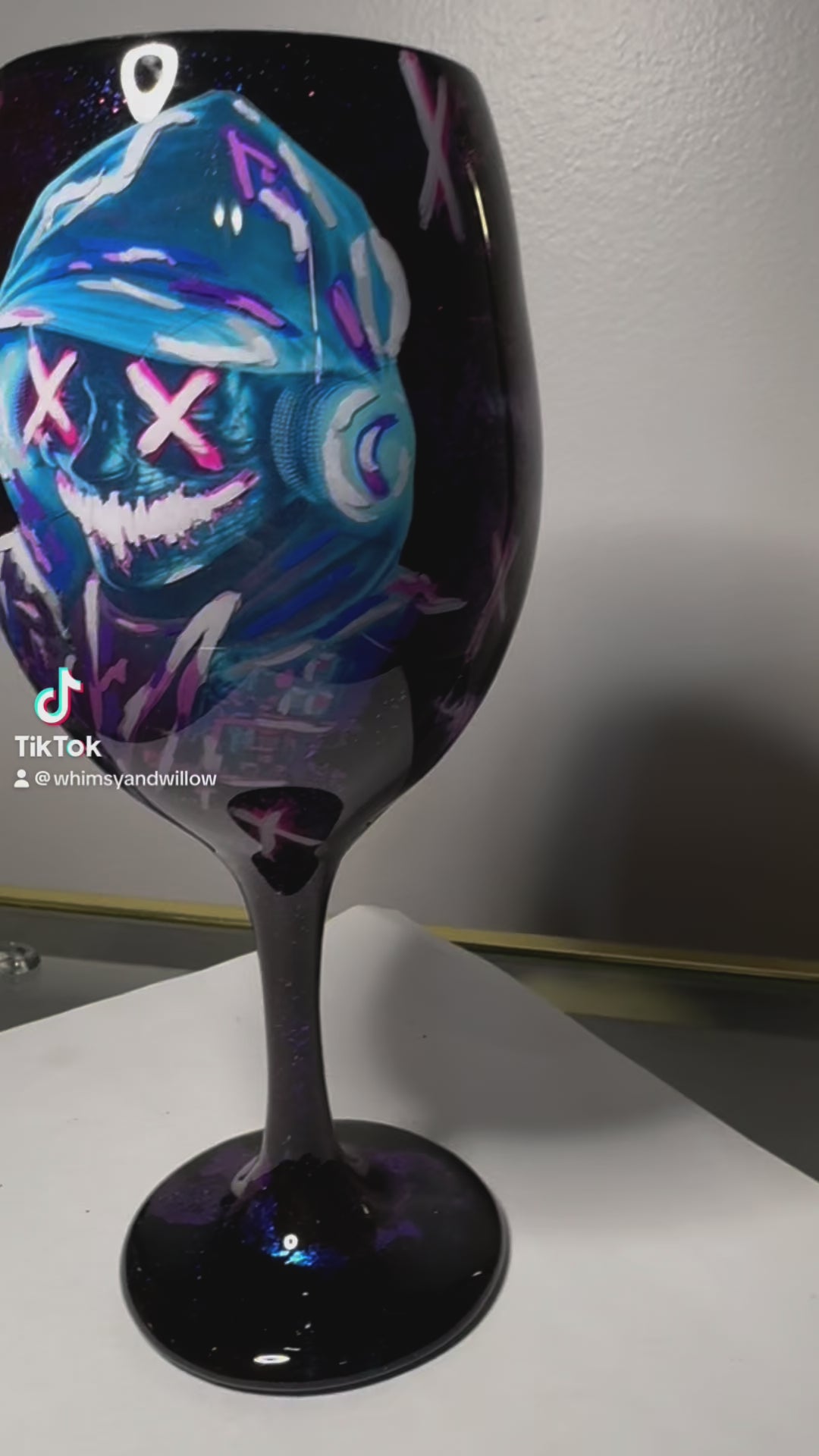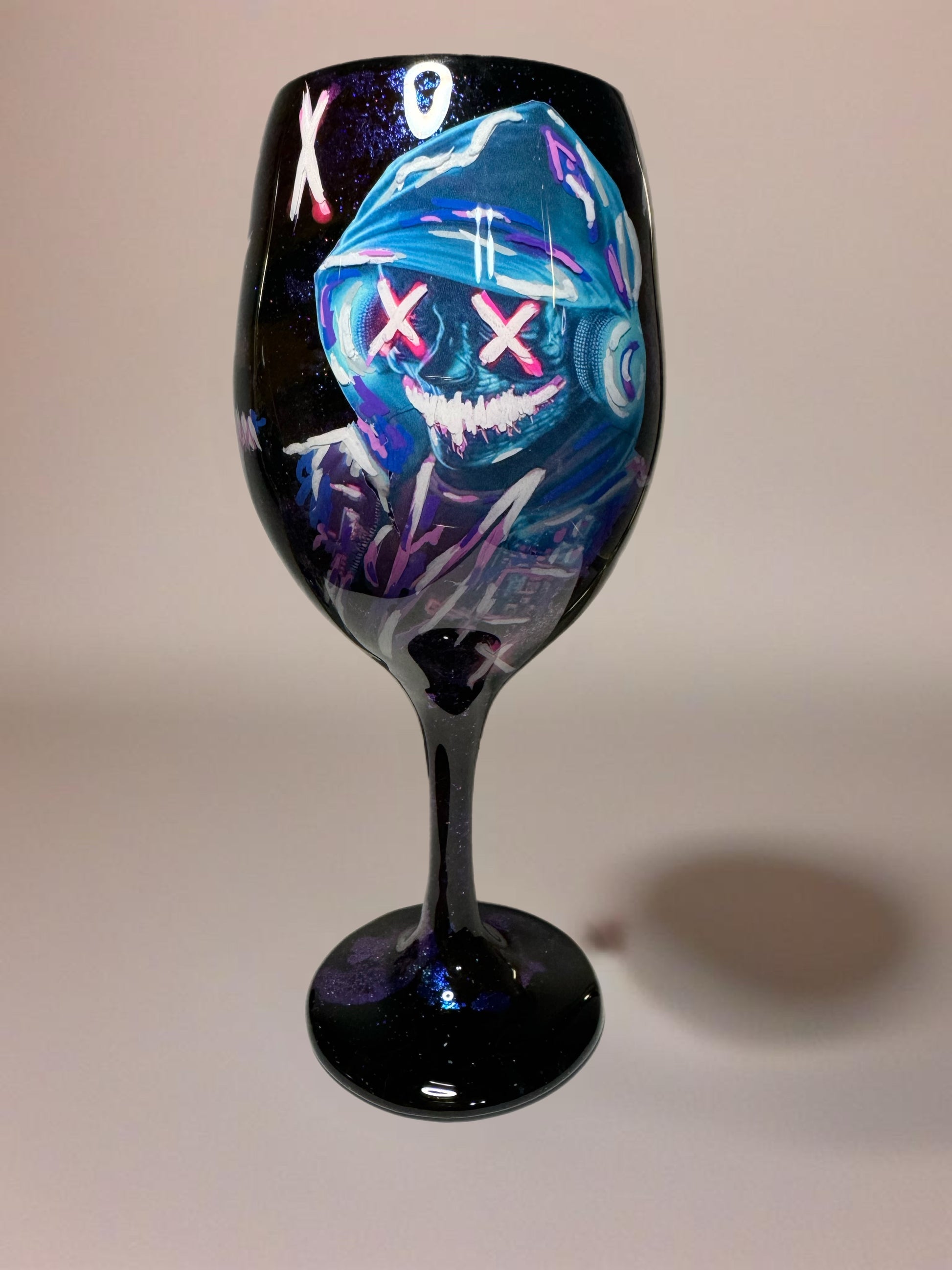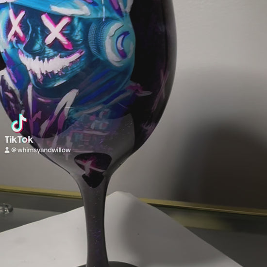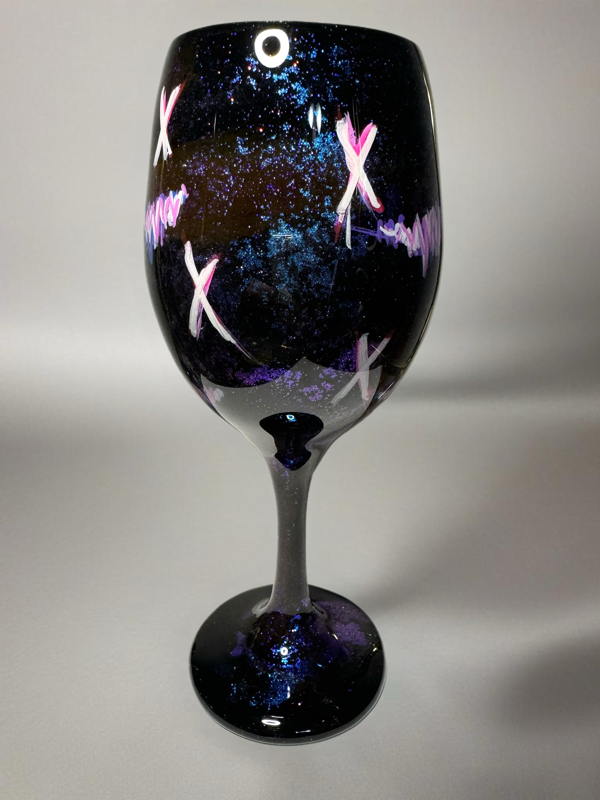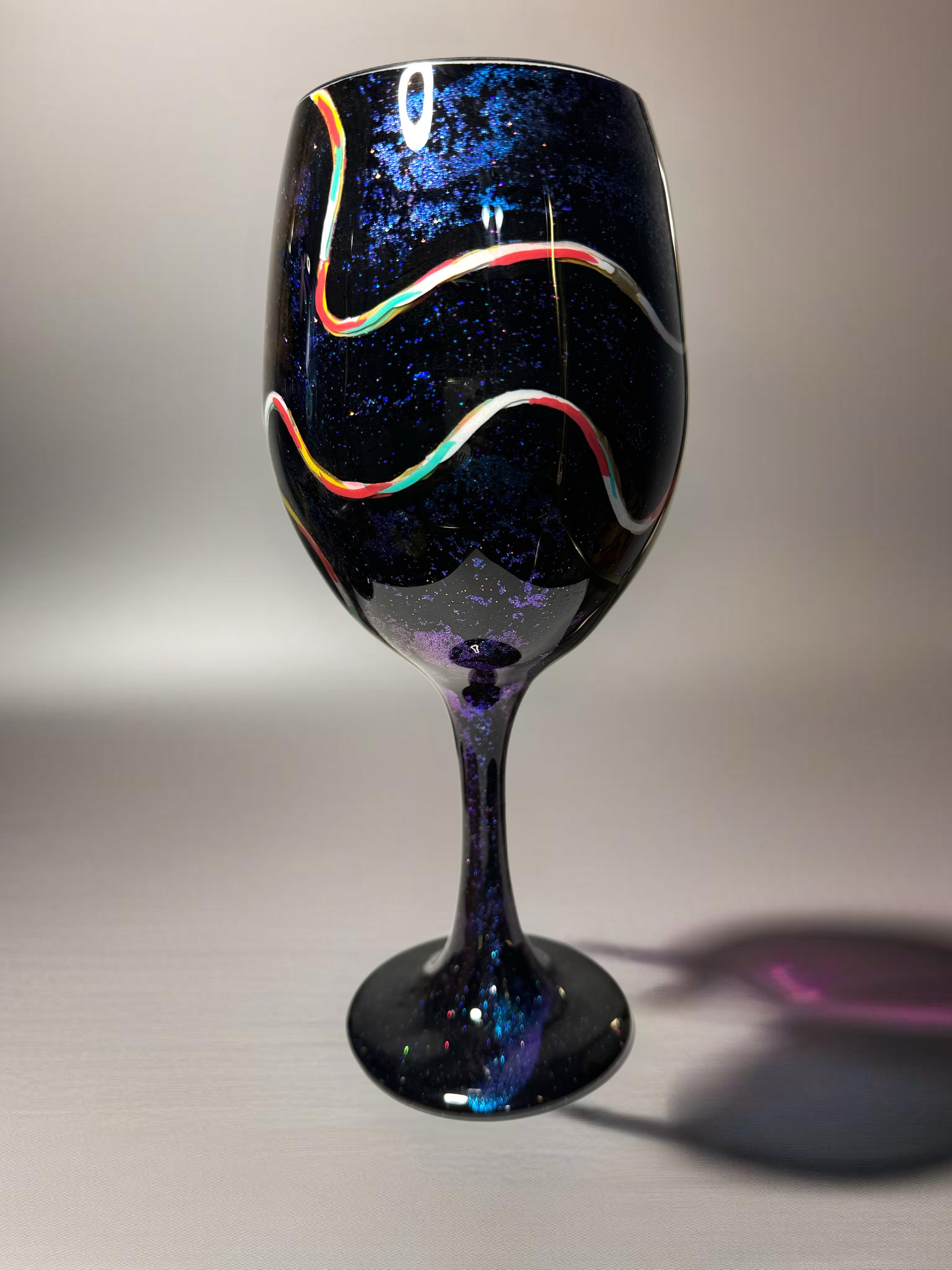 Each glass is individually hand-painted using various alcohol inks, mica or pigment pastes. No two glasses will be exactly alike. Glasses are made to order, so yours will look very similar to the glasses pictured, but indeed one-of-a-kind.