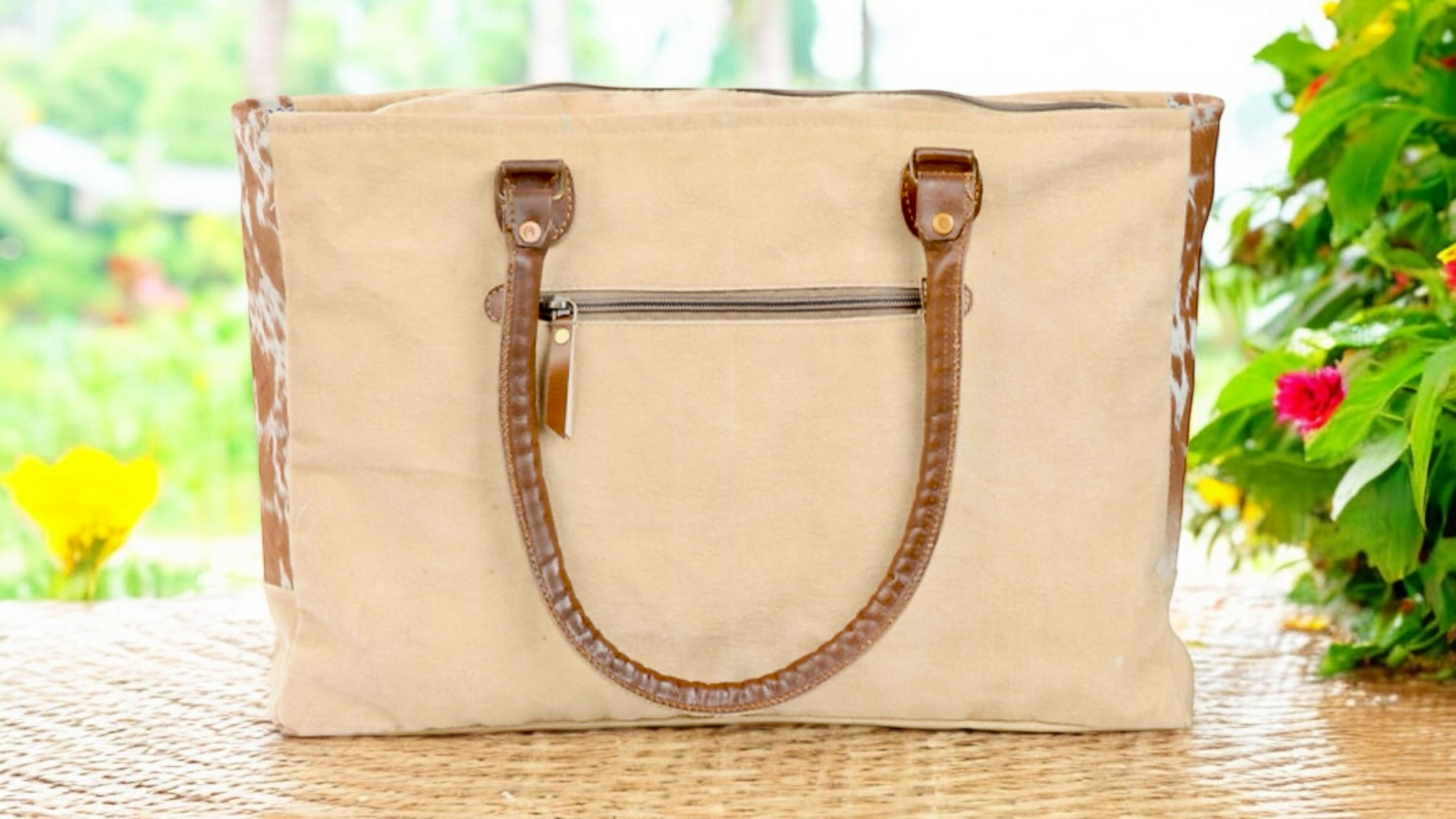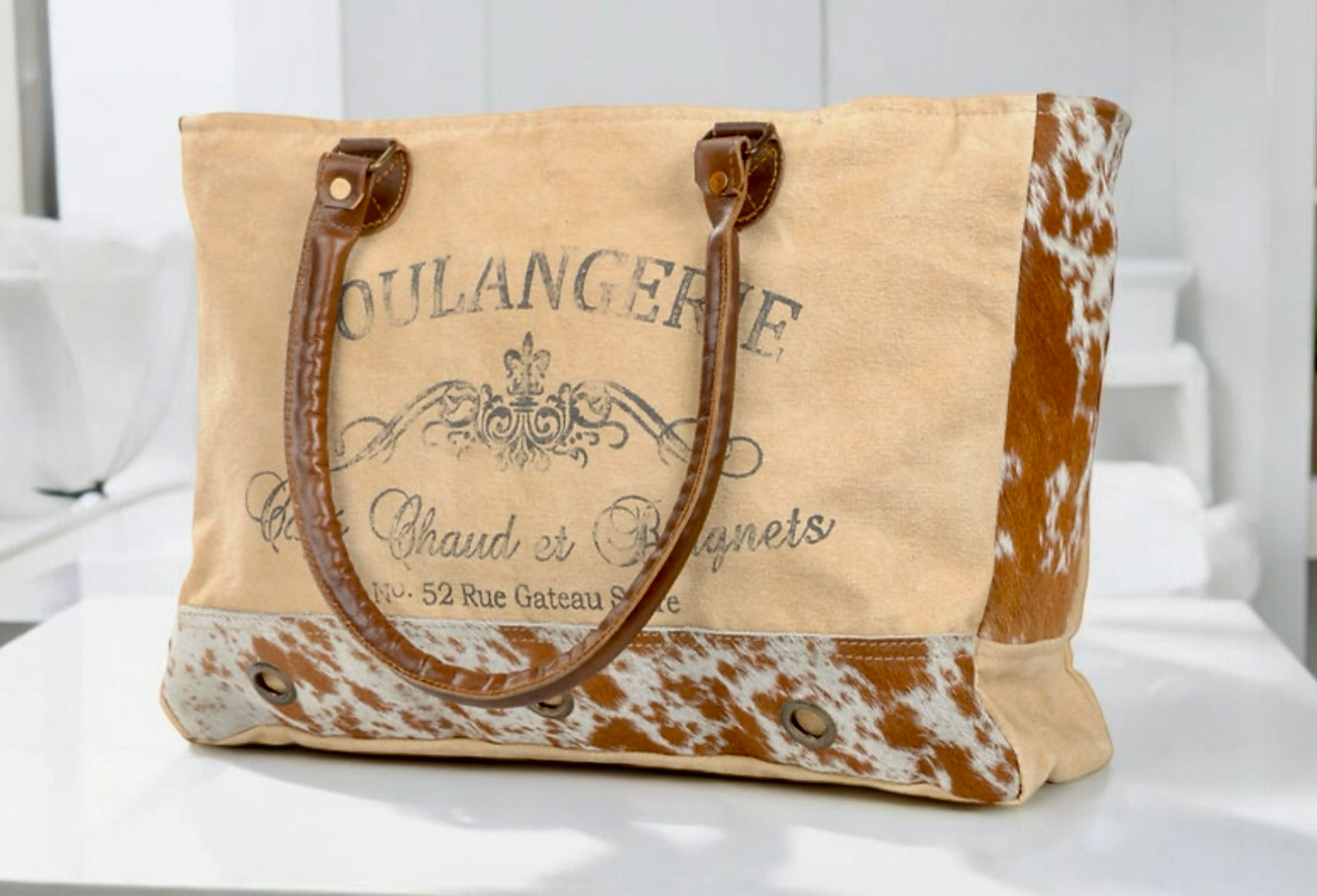 The Boulangerie Tote with Cowhide Trim is a chic and deluxe must-have for your daily necessities. The distinctive cowhide detailing imparts a sense of refinement.