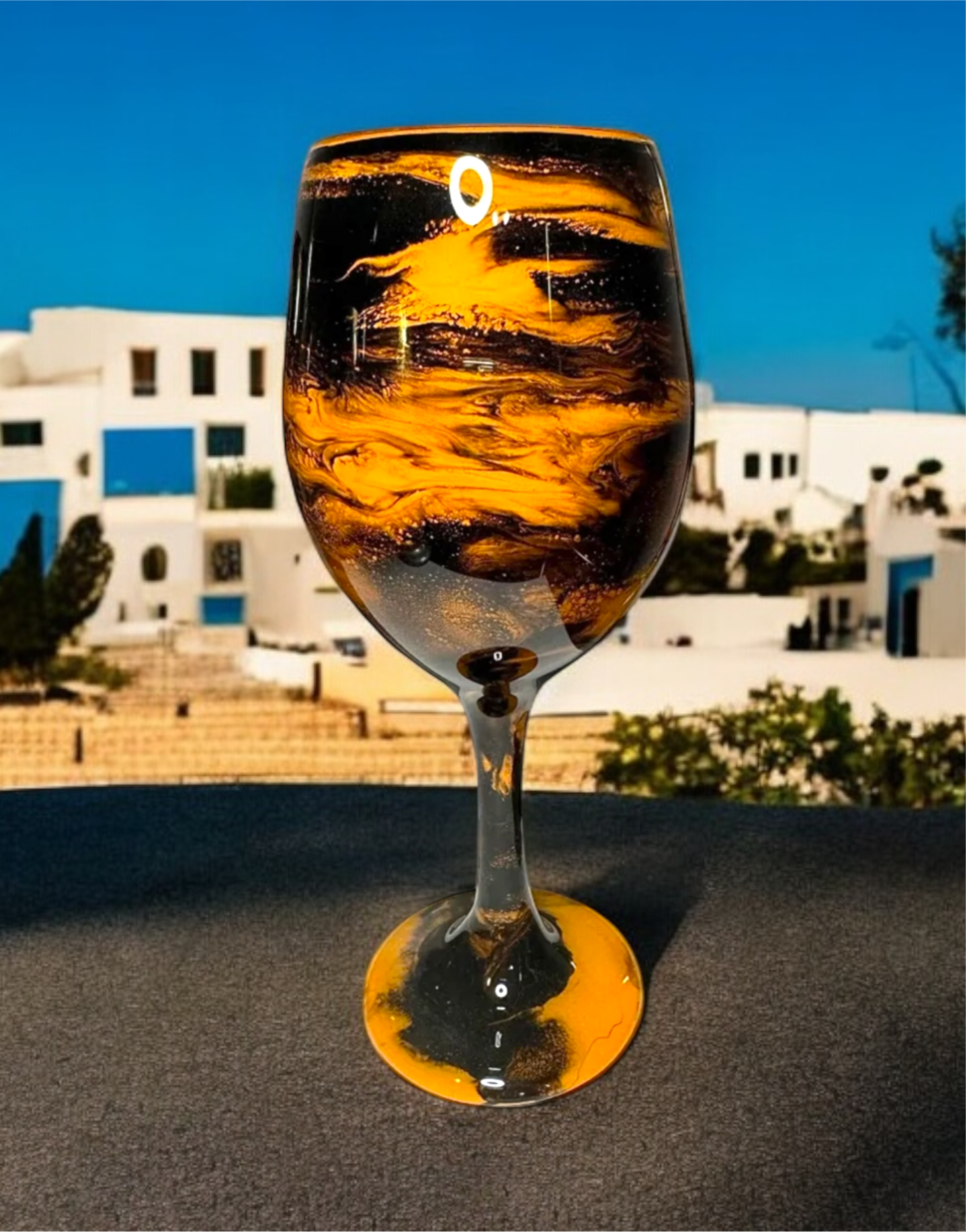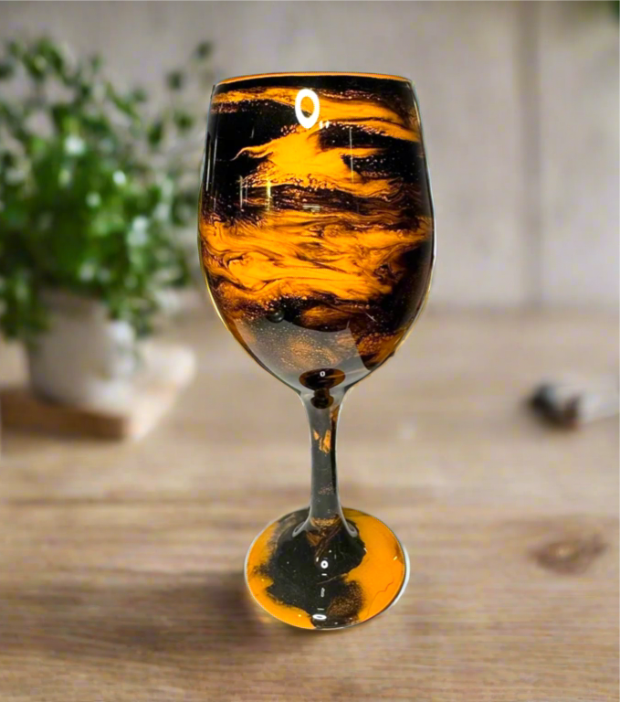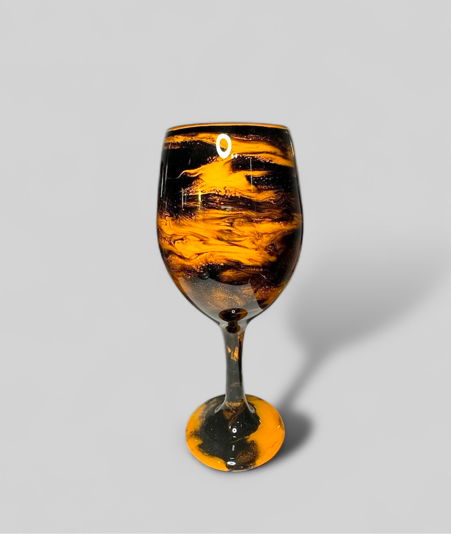 Orange and Black Swirl Wine Glasses and Drinkware-Handmade