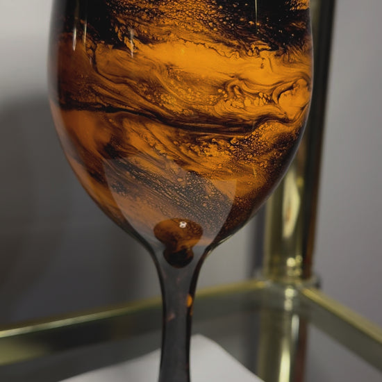 Each glass is individually hand-painted using various alcohol inks, mica or pigment pastes. No two glasses will be exactly alike. Glasses are made to order, so yours will look very similar to the glasses pictured, but indeed one-of-a-kind.