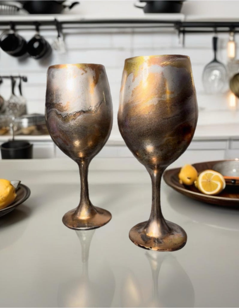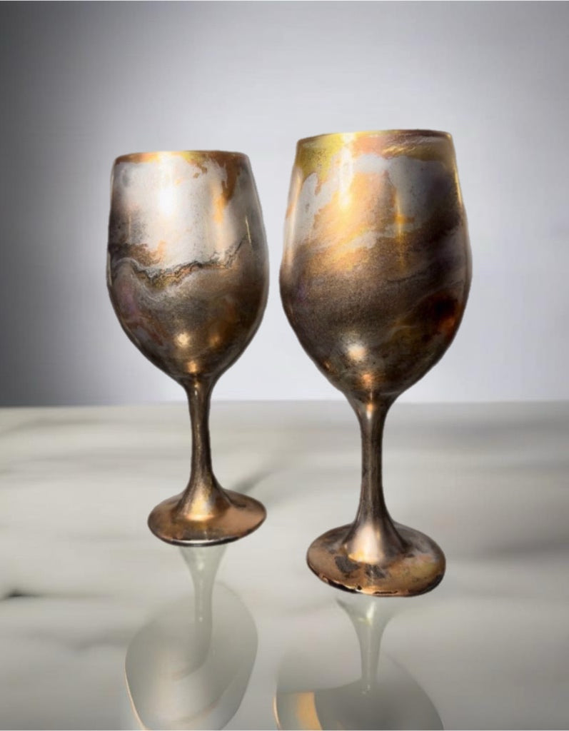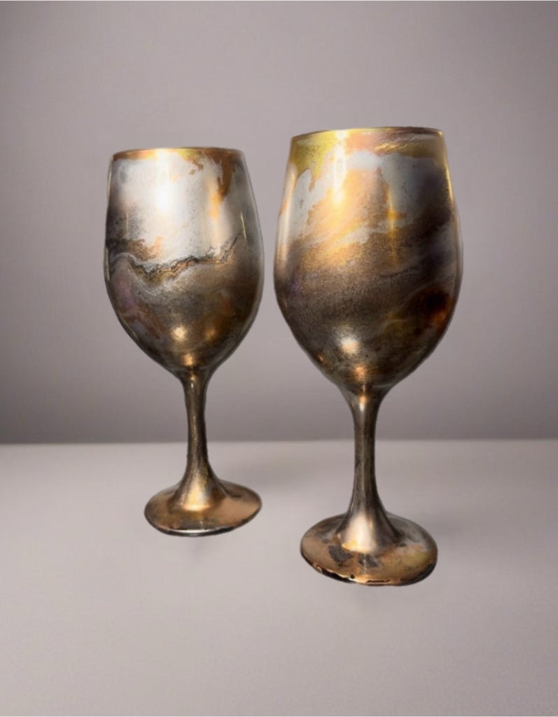 Pressed Metallic Wine Glasses and Drinkware-Handmade