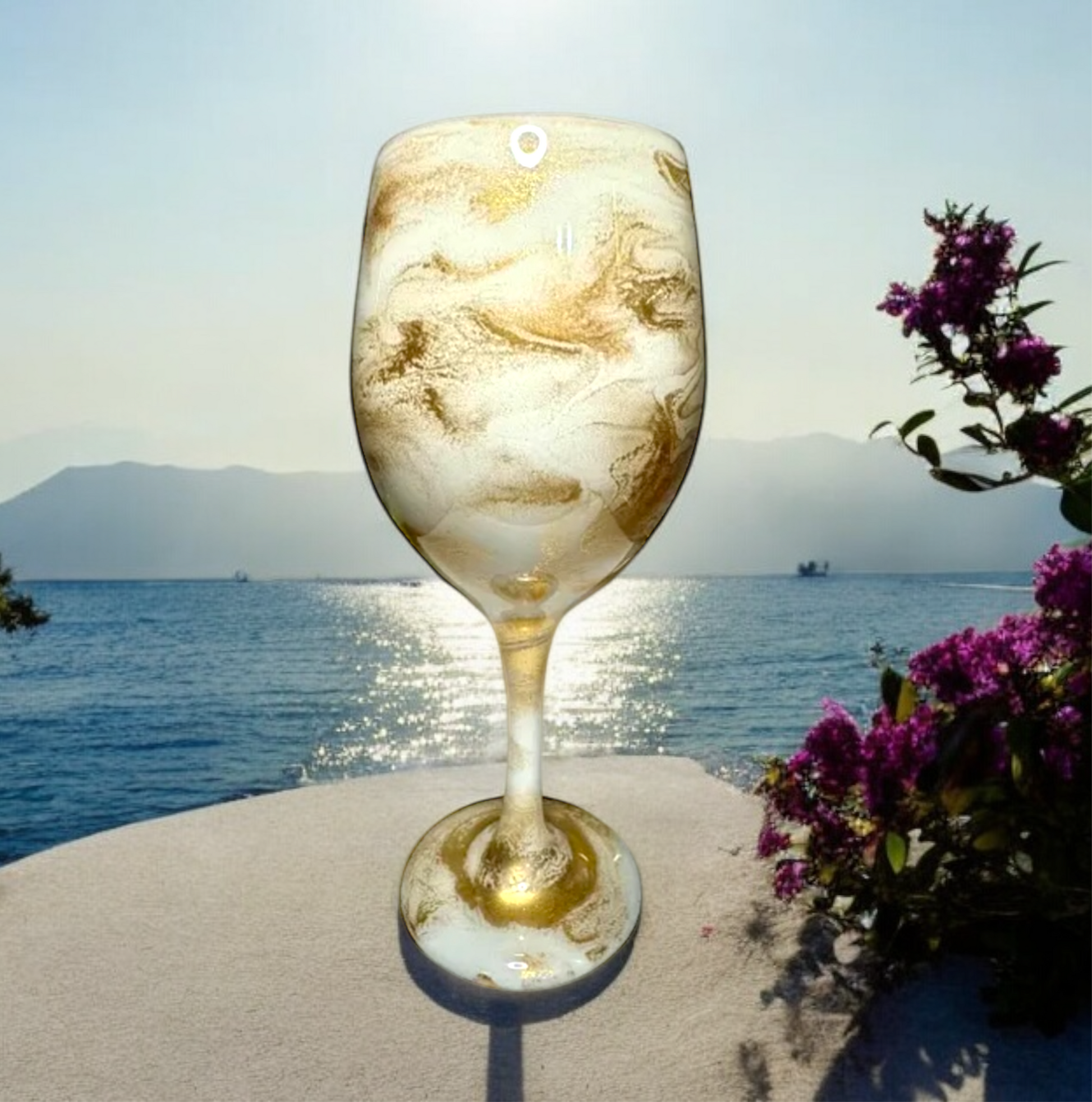 Sip in style with our Handmade Wine Glass and Drinkware (several glass styles to choose from). Perfect for beach days or cozy nights in, this elegant glass adds a touch of luxury to any occasion.