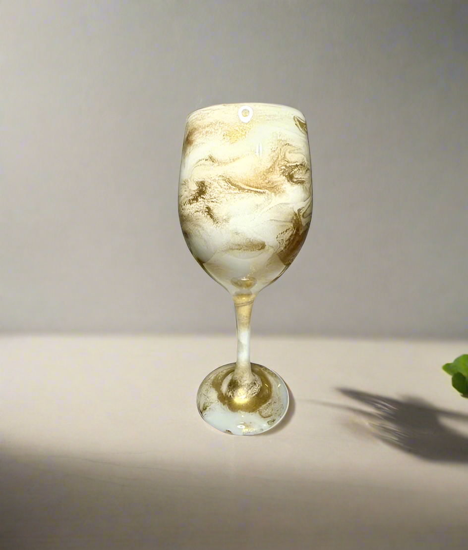 White and Gold Wine Glasses and Drinkware-Handmade