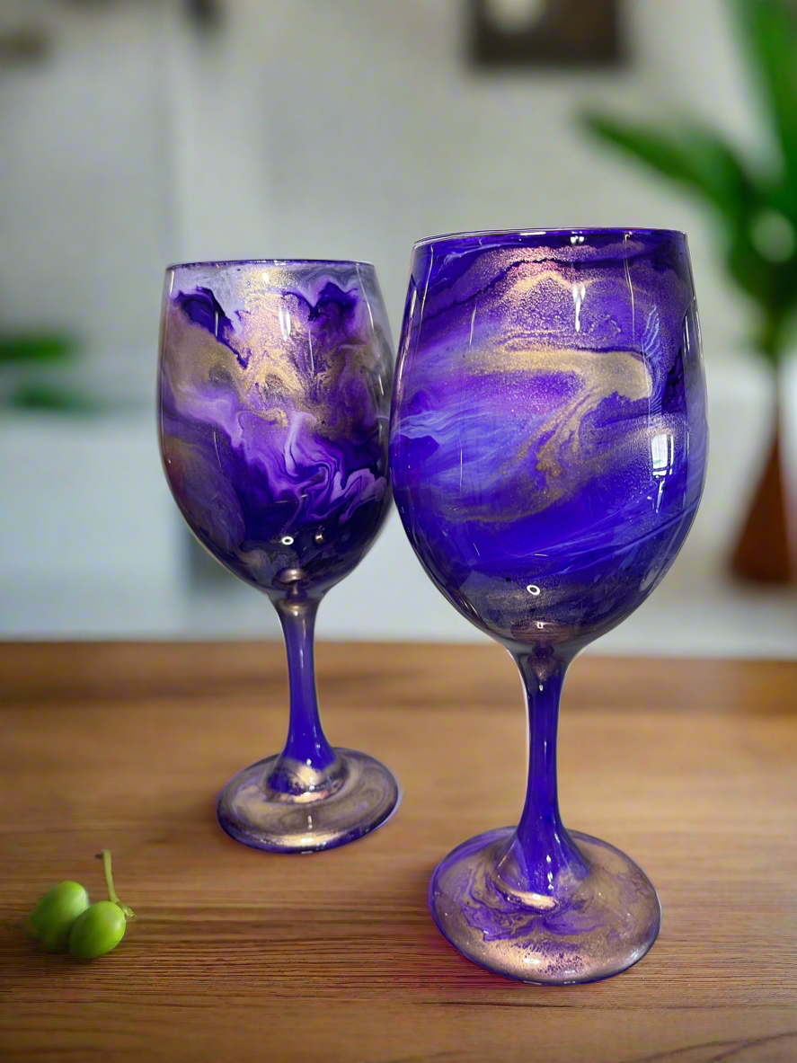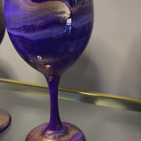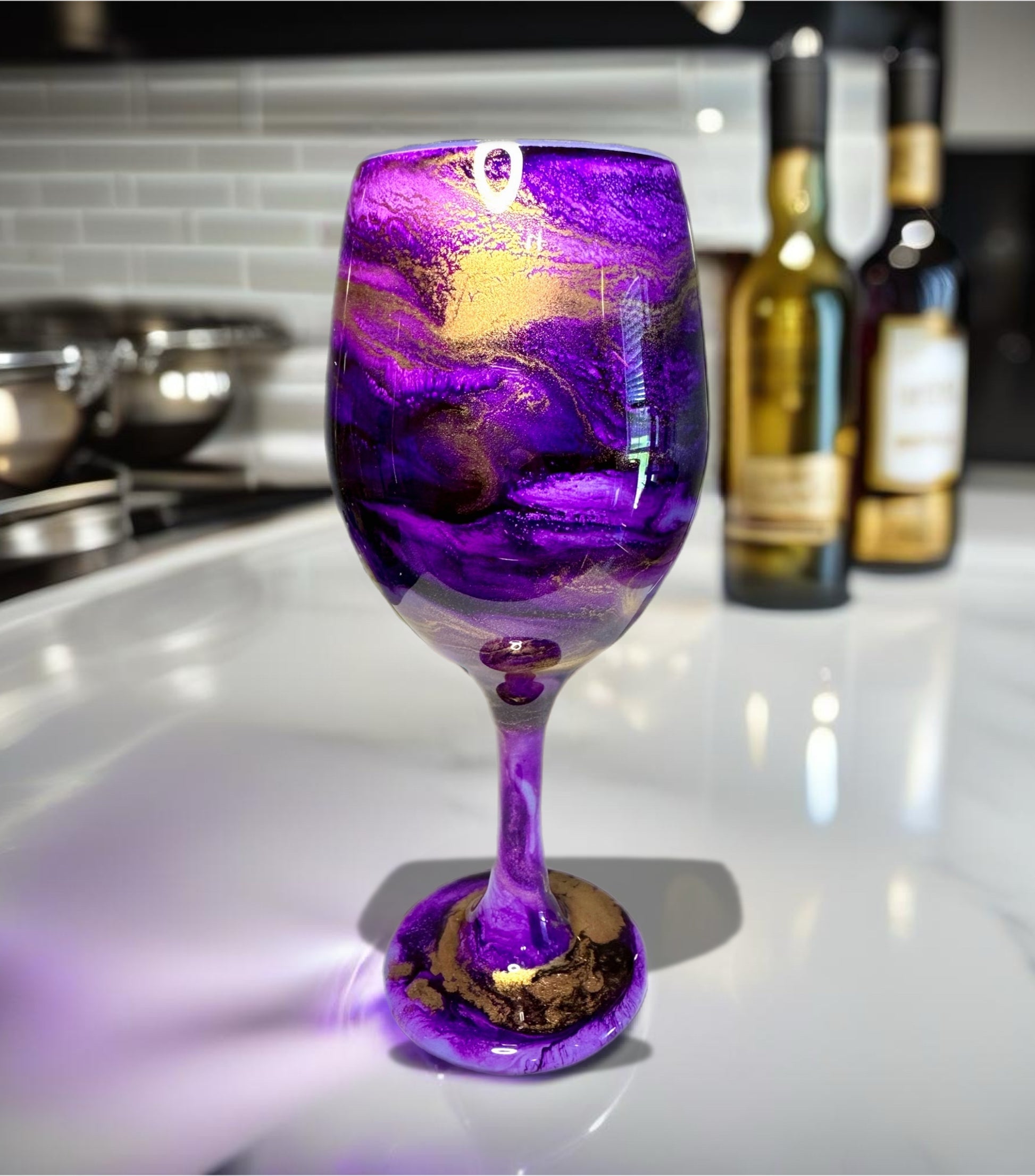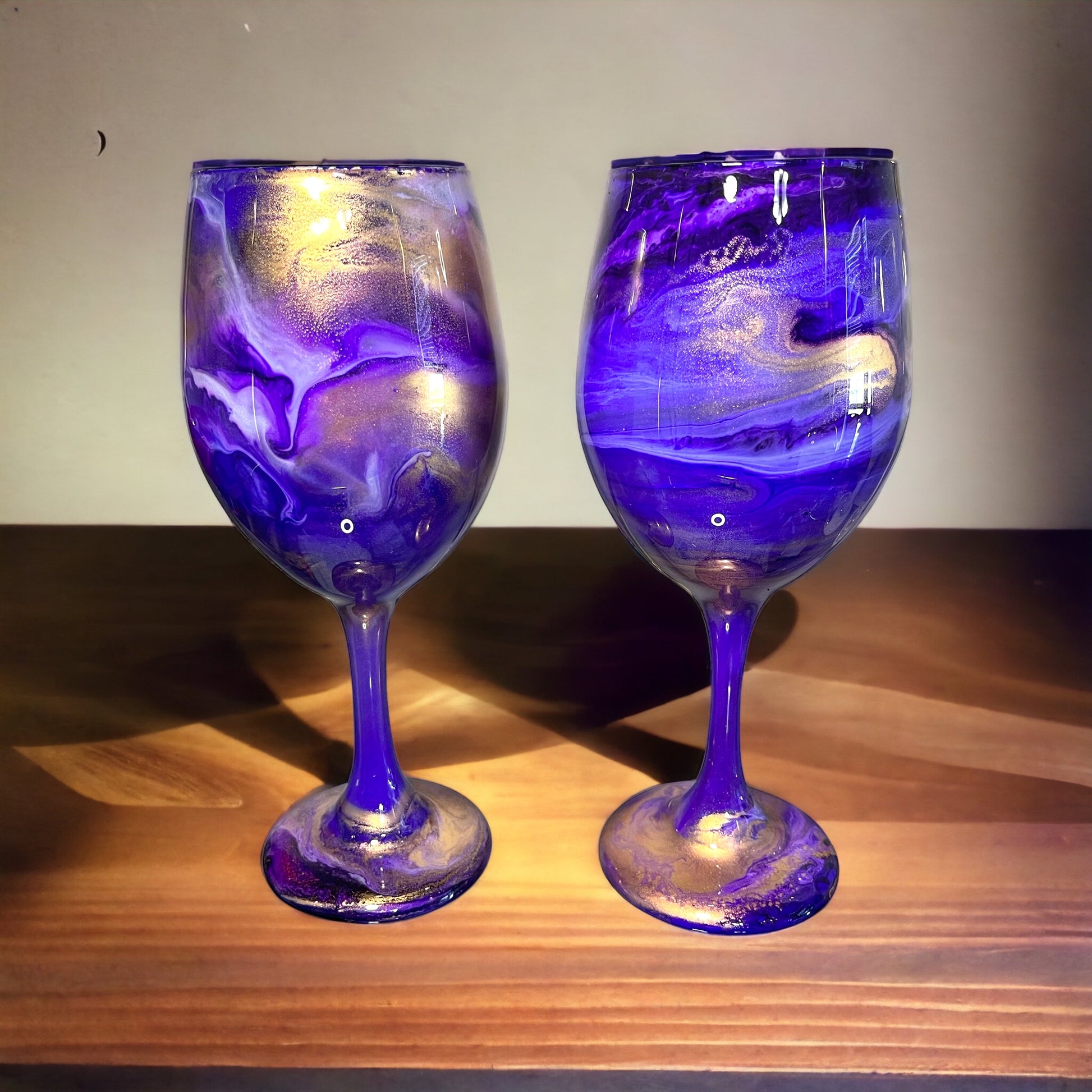 Purple and Gold Swirl Wine Glasses and Drinkware-Handmade