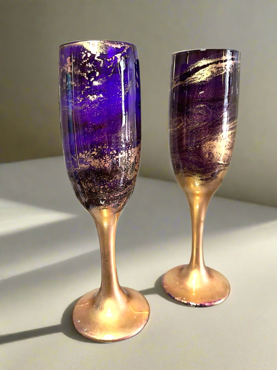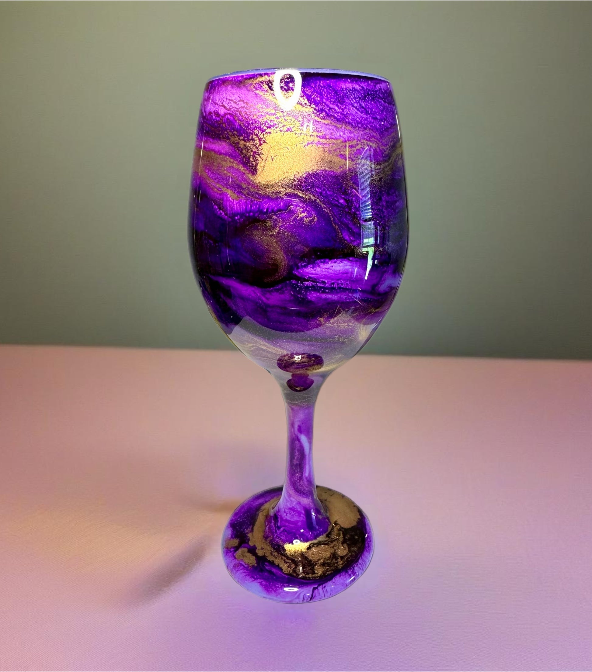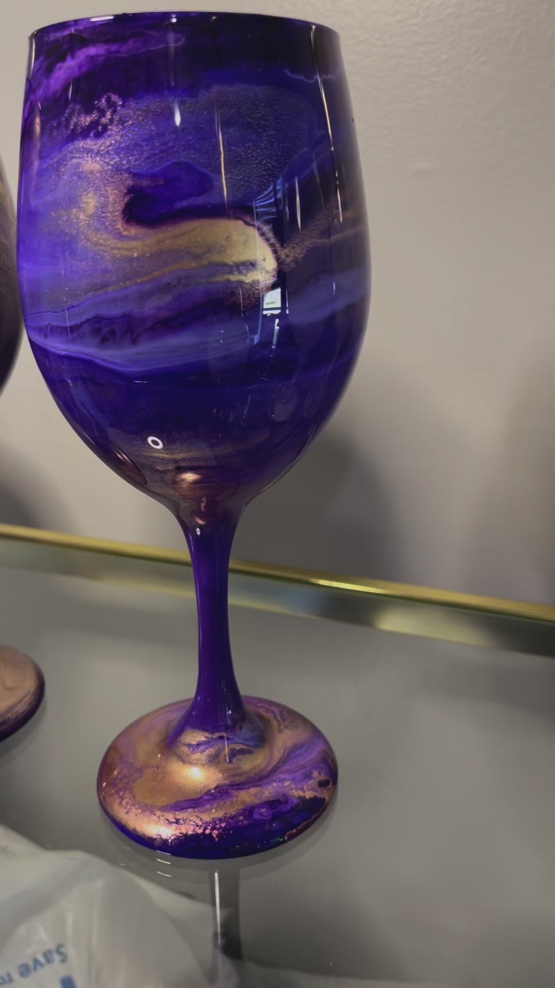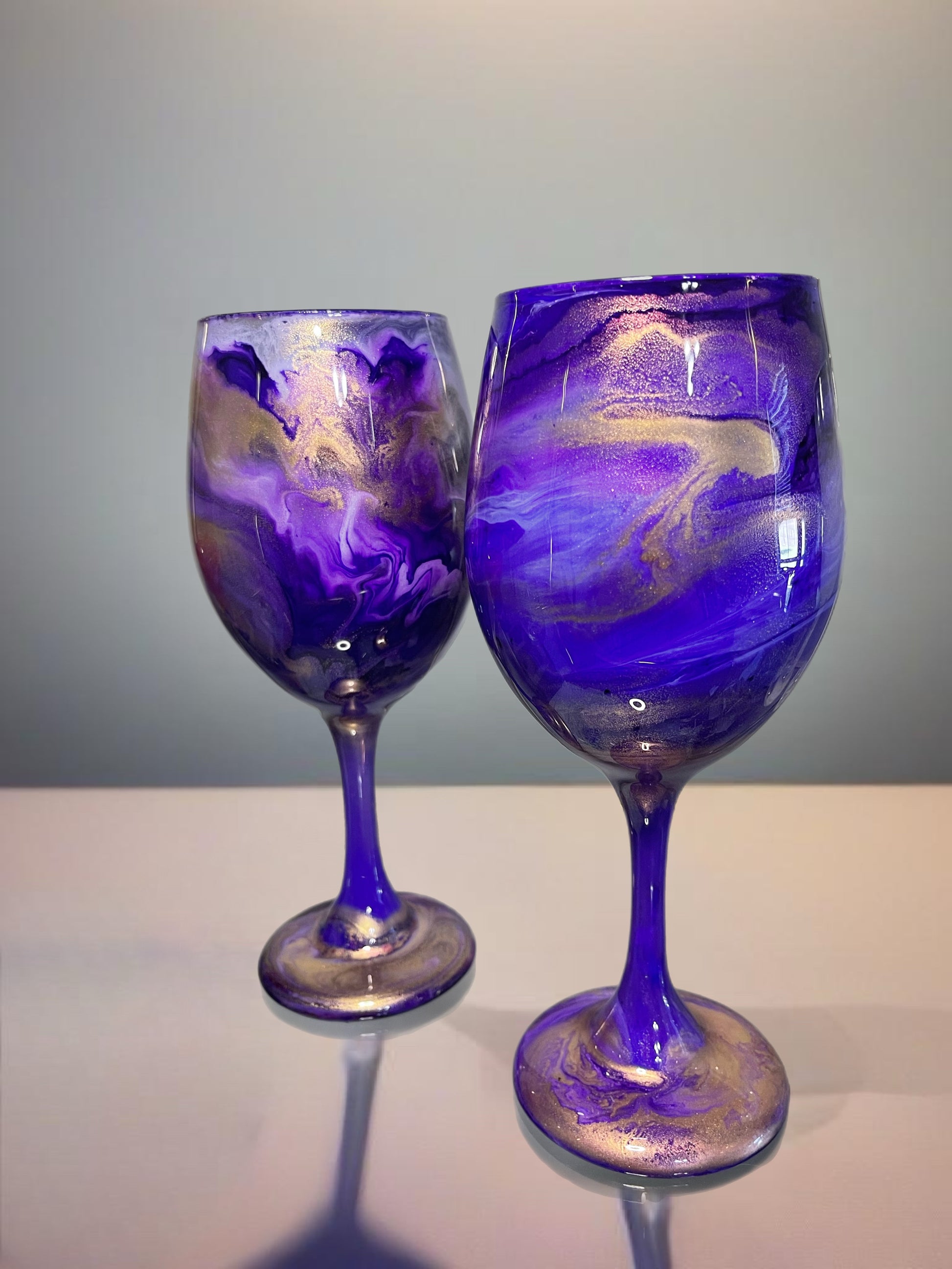 Purple and Gold Swirl Wine Glasses and Drinkware-Handmade