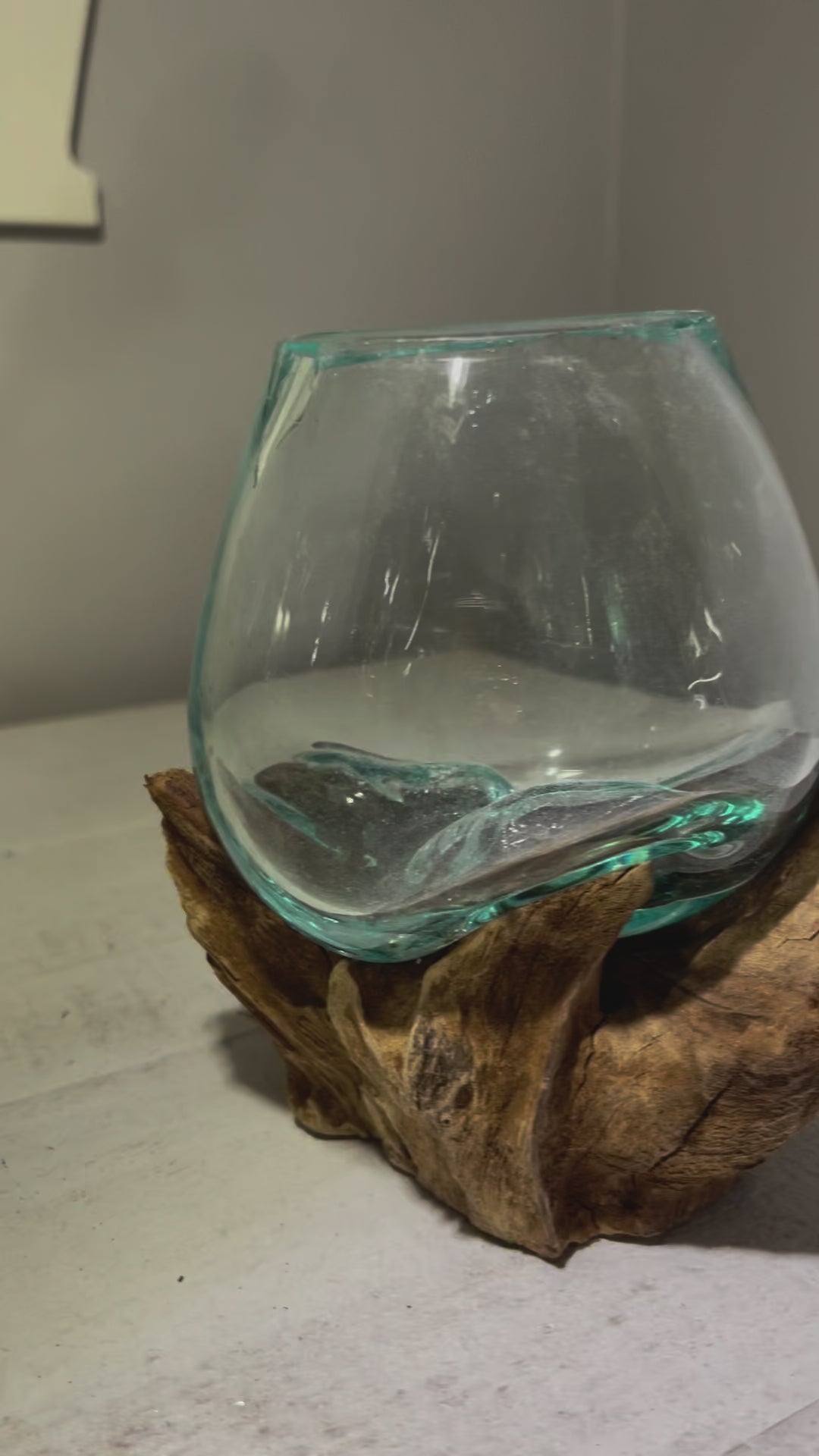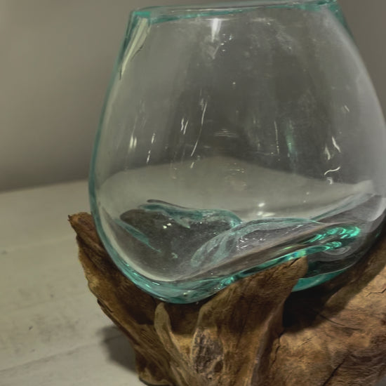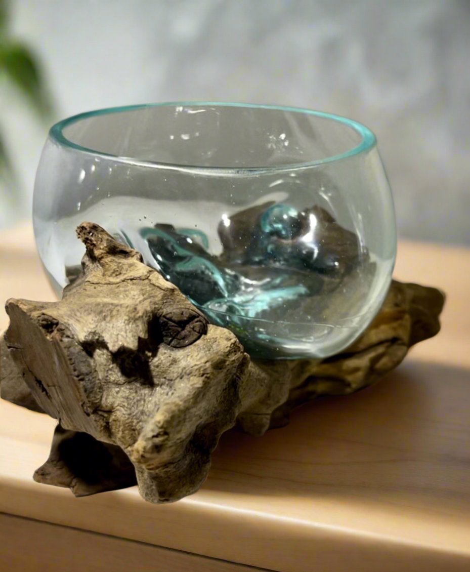 Recycled Molten Glass Bowl on Balinese Gamal Wood