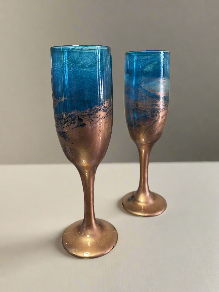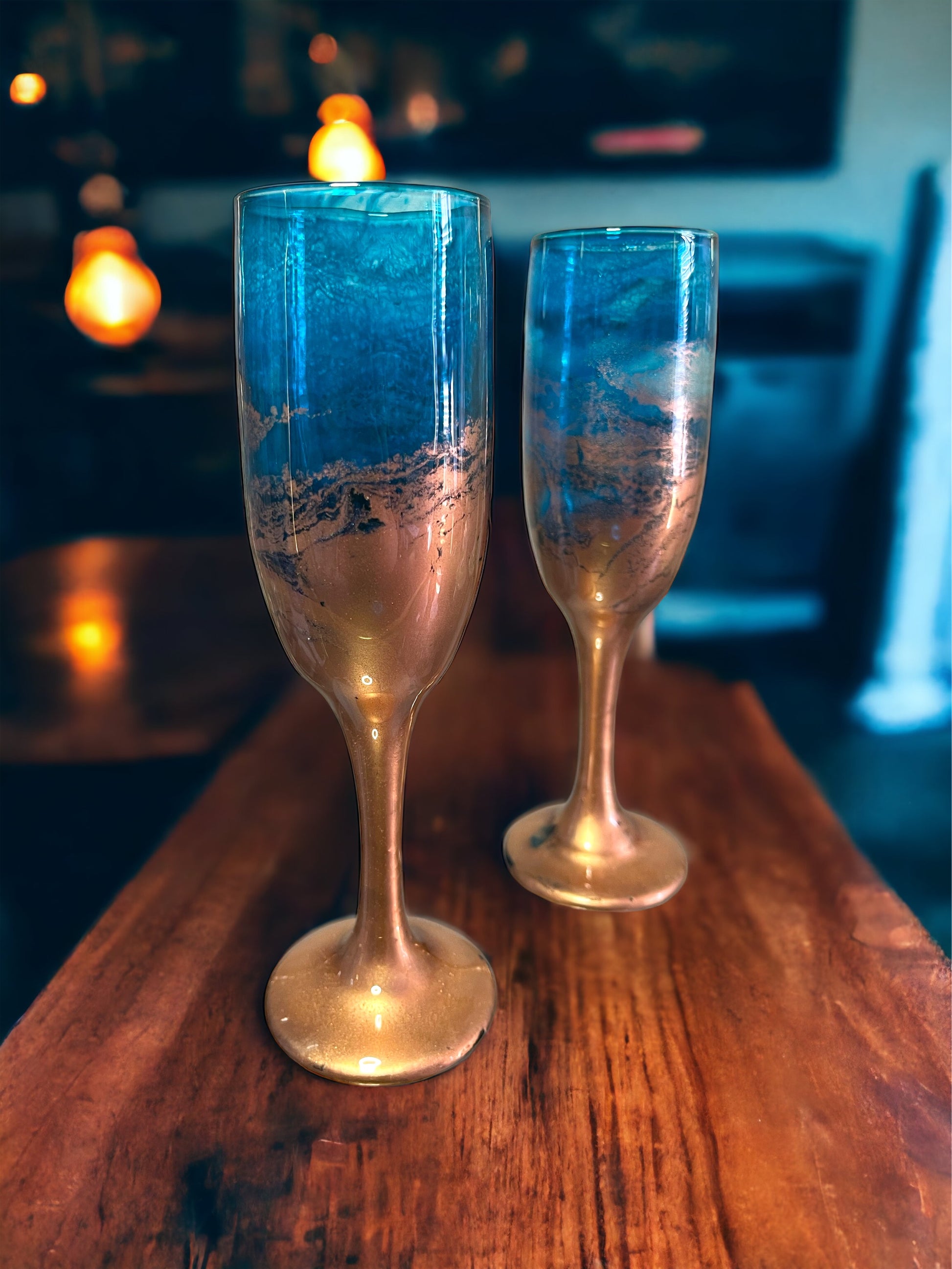 Outside of each glass is coated using layers of FDA compliant epoxy resin. These beautiful glasses 100% safe to use and drink out of.