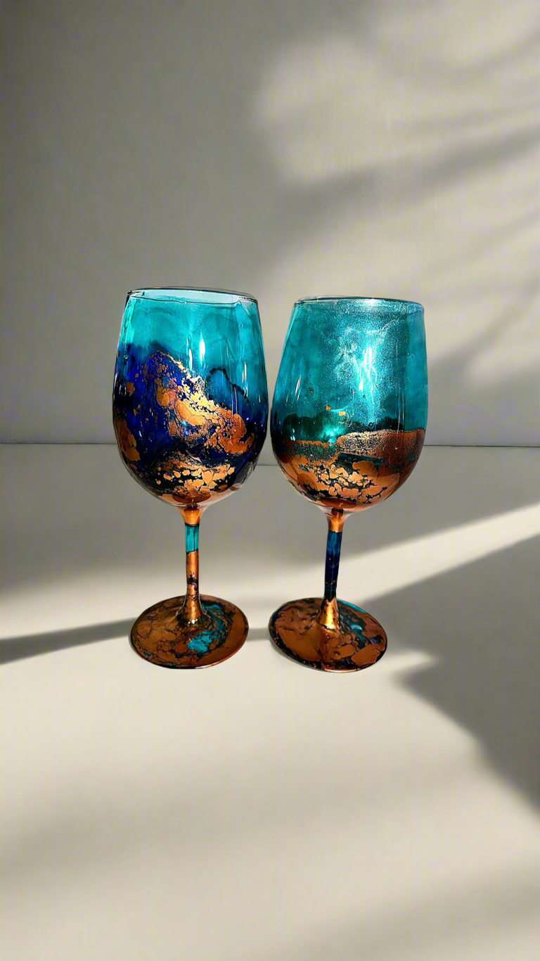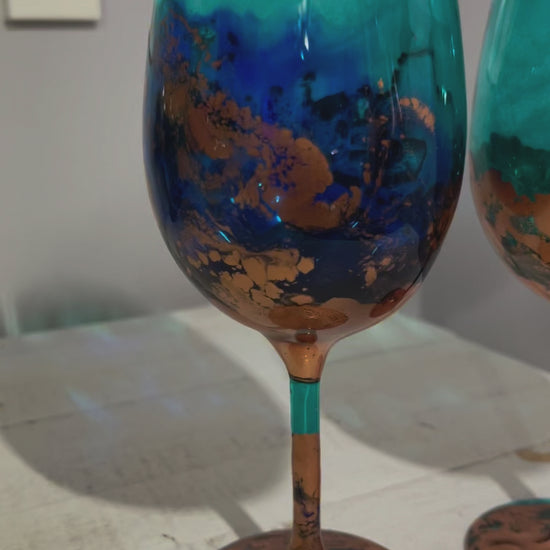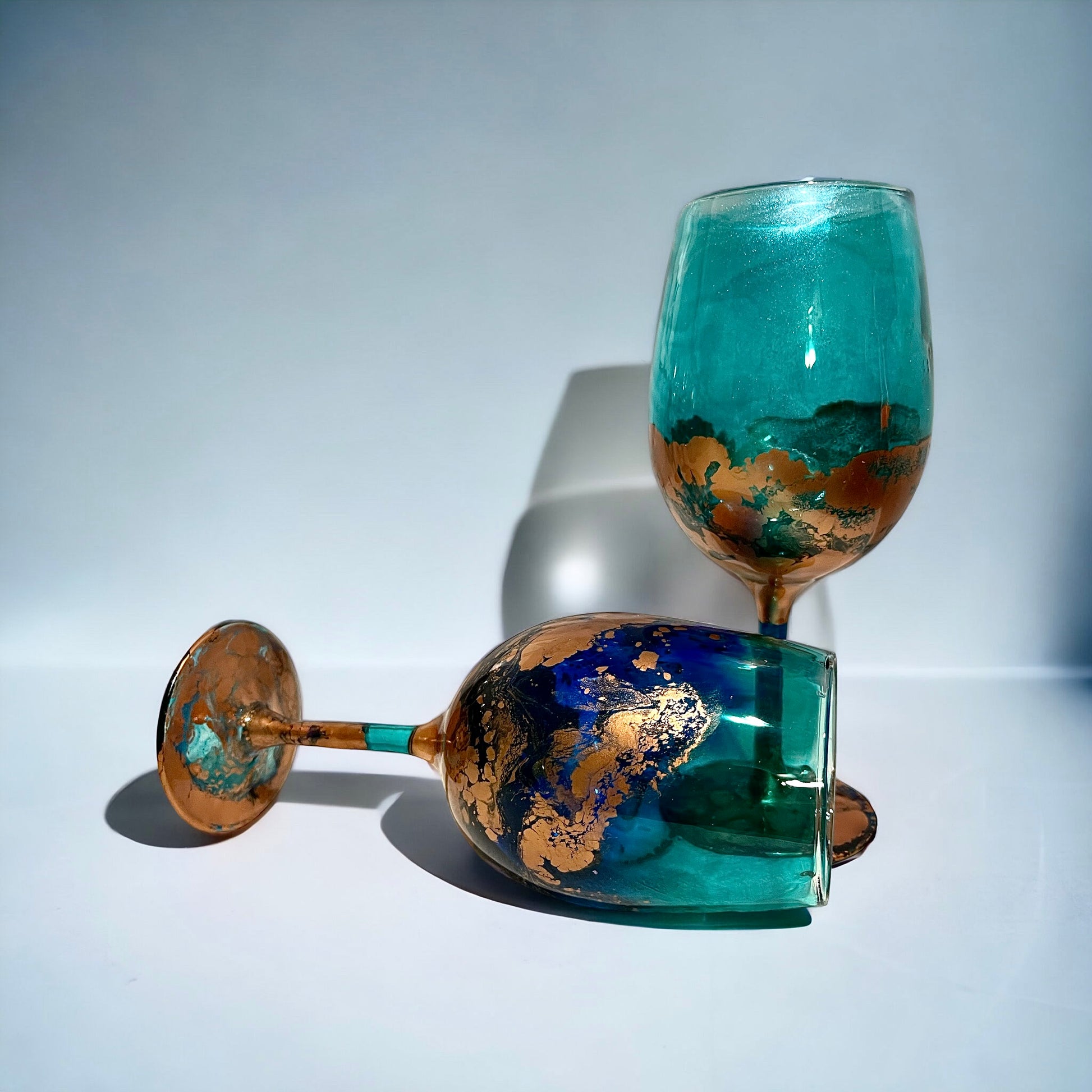 Turquoise and Copper Wine Glass & Drinkware-Handmade