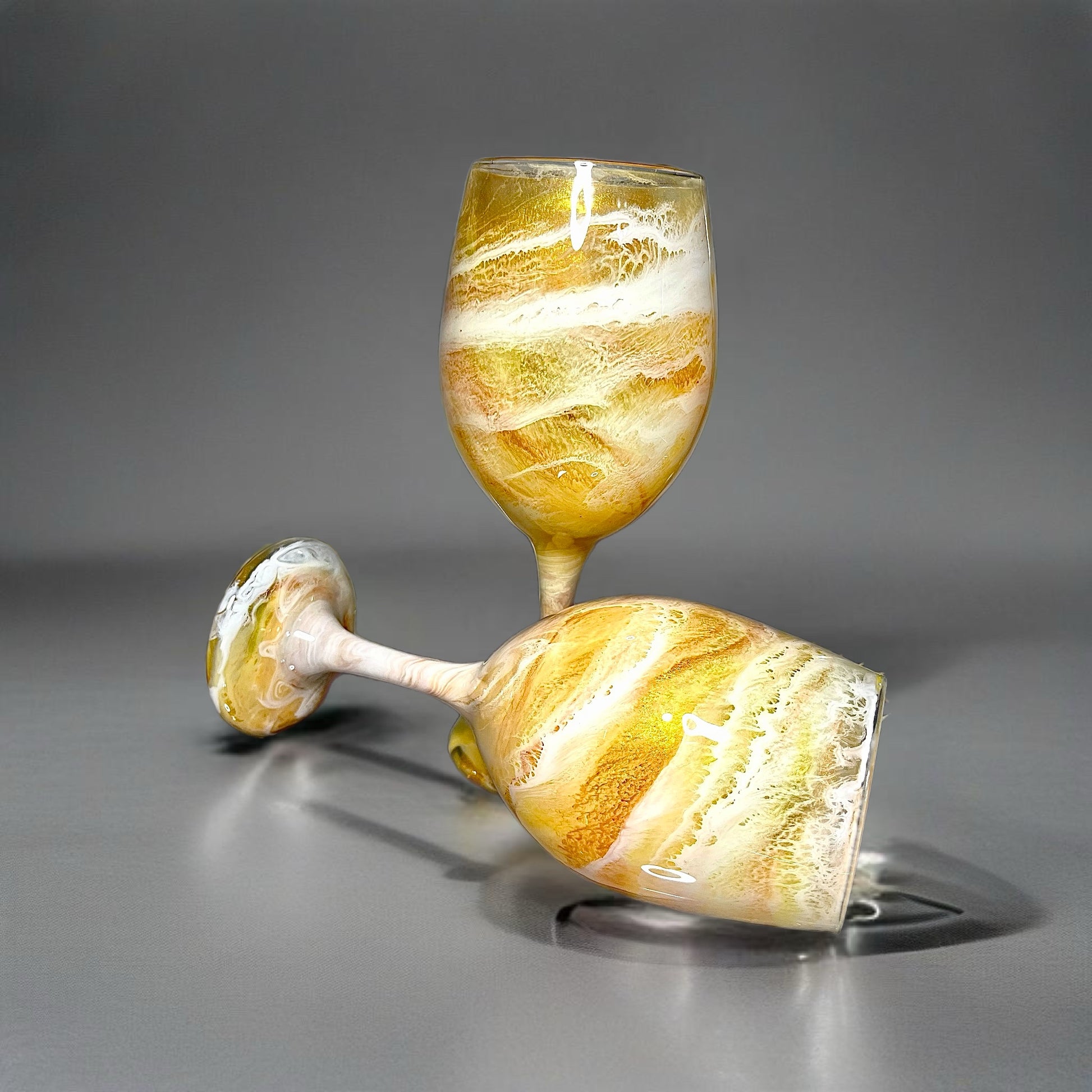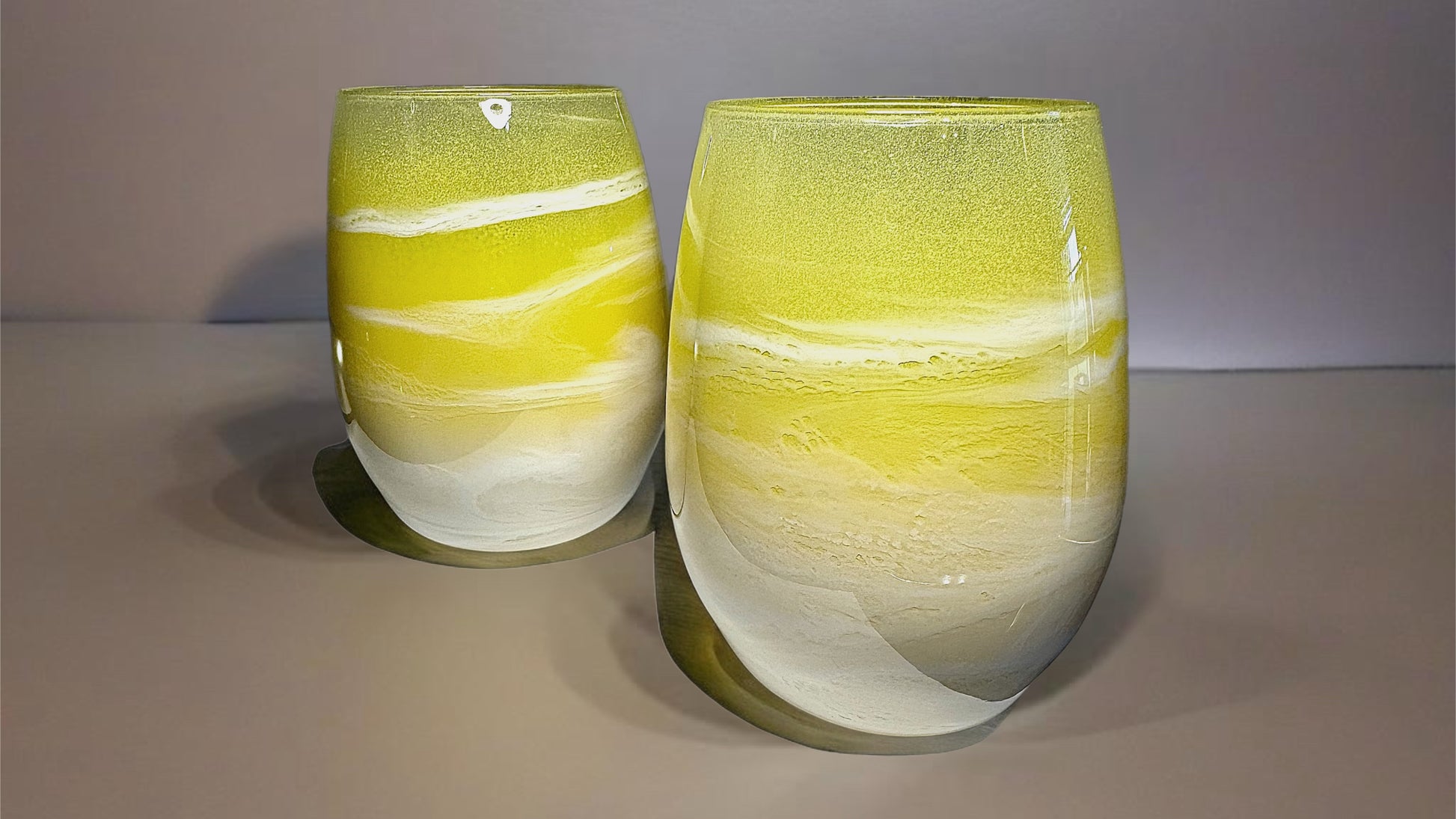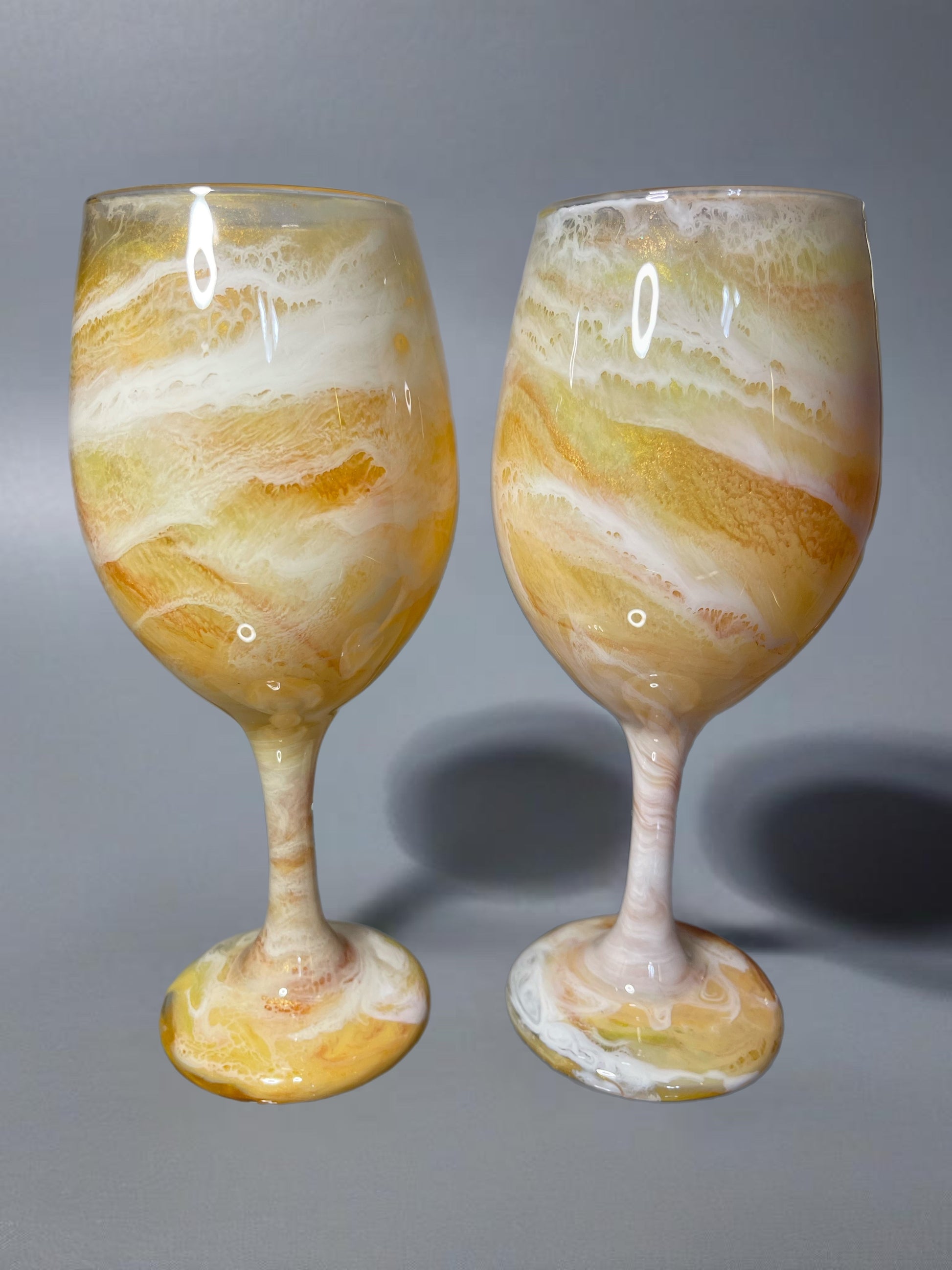 Yellow and White Wine Glasses and Drinkware-Handmade