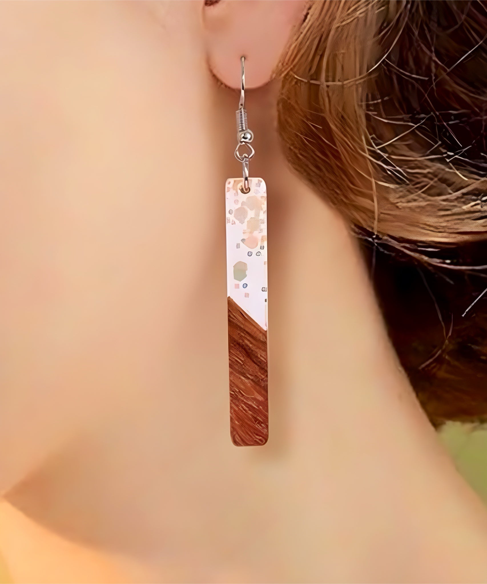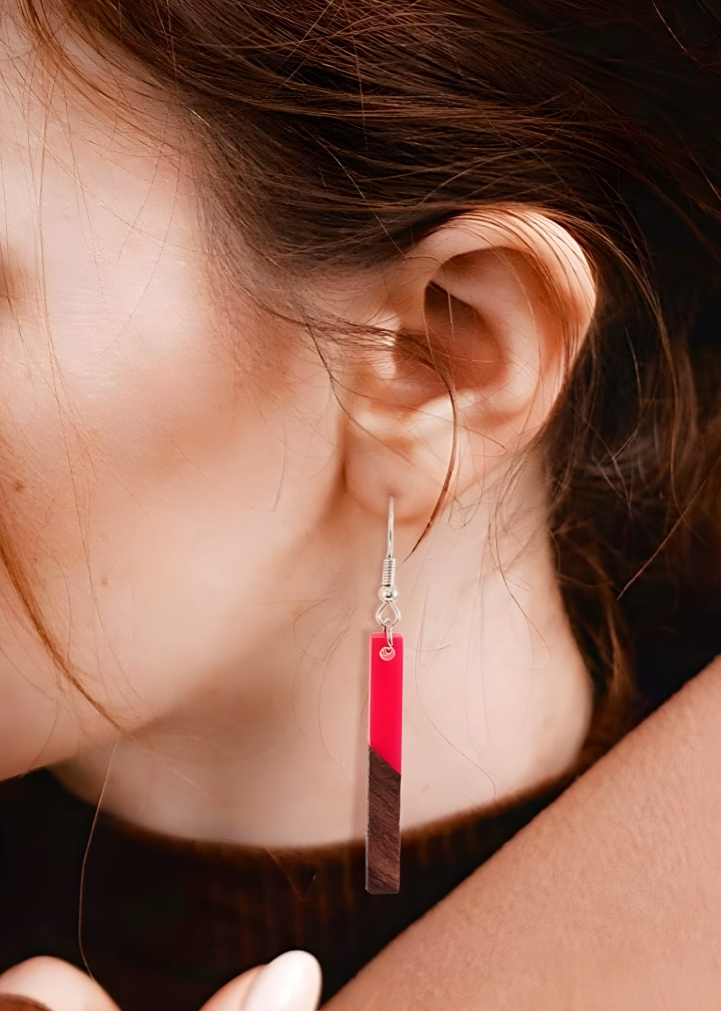 Wood and Resin Drop Earrings-Multiple Colors Available