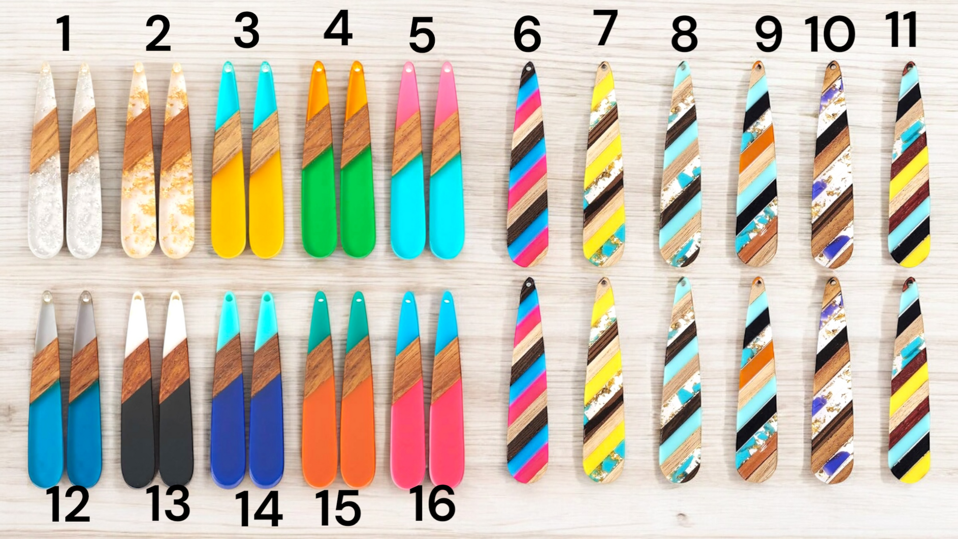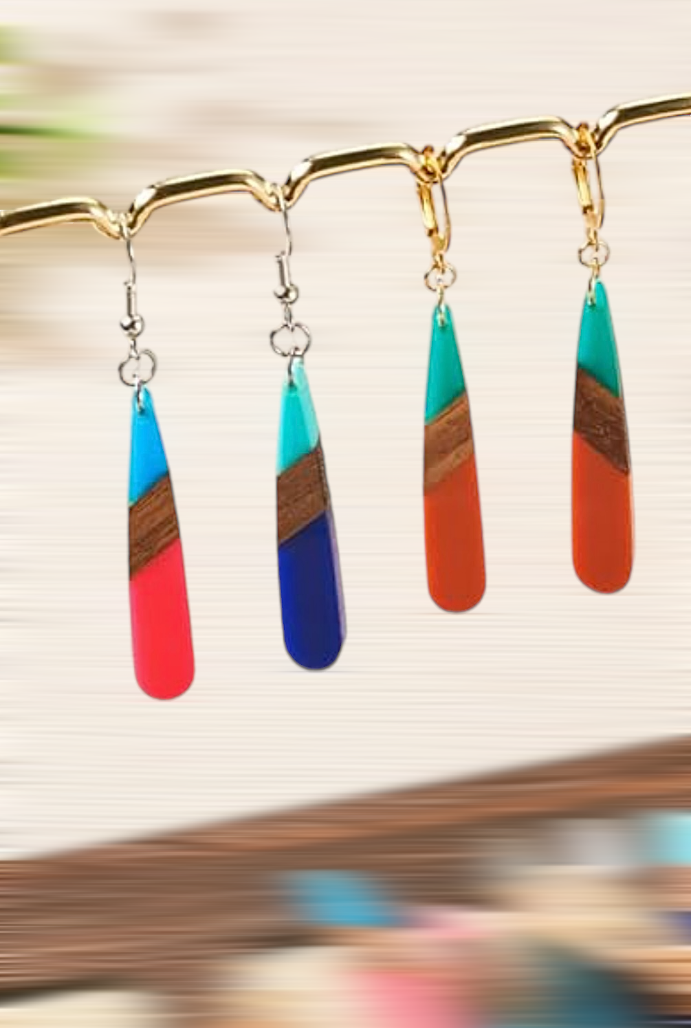 Wood and Resin Drop Earrings-Multiple Colors Available