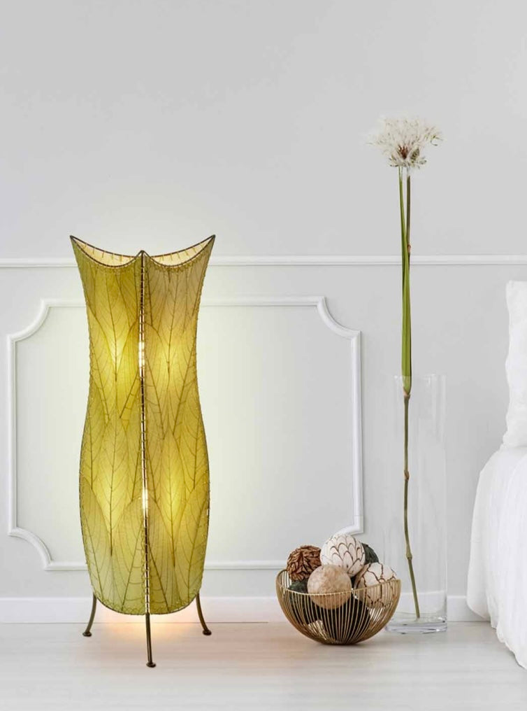 The Flower Bud Lamp imitates the shape of a budding flower. The wide base closes in slightly at the neck before opening back up at the top producing a bloom of upward light.