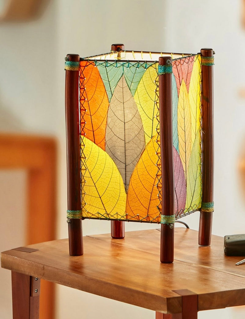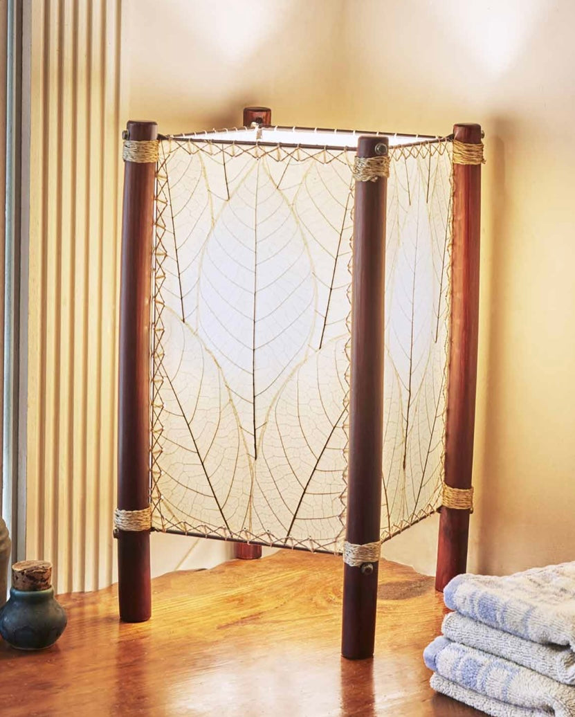 The Fortune lamp gets its name because of the sturdy rattan legs. Featuring real cocoa leaves and a simple square design, this lamp is a true show piece and conversation starter.