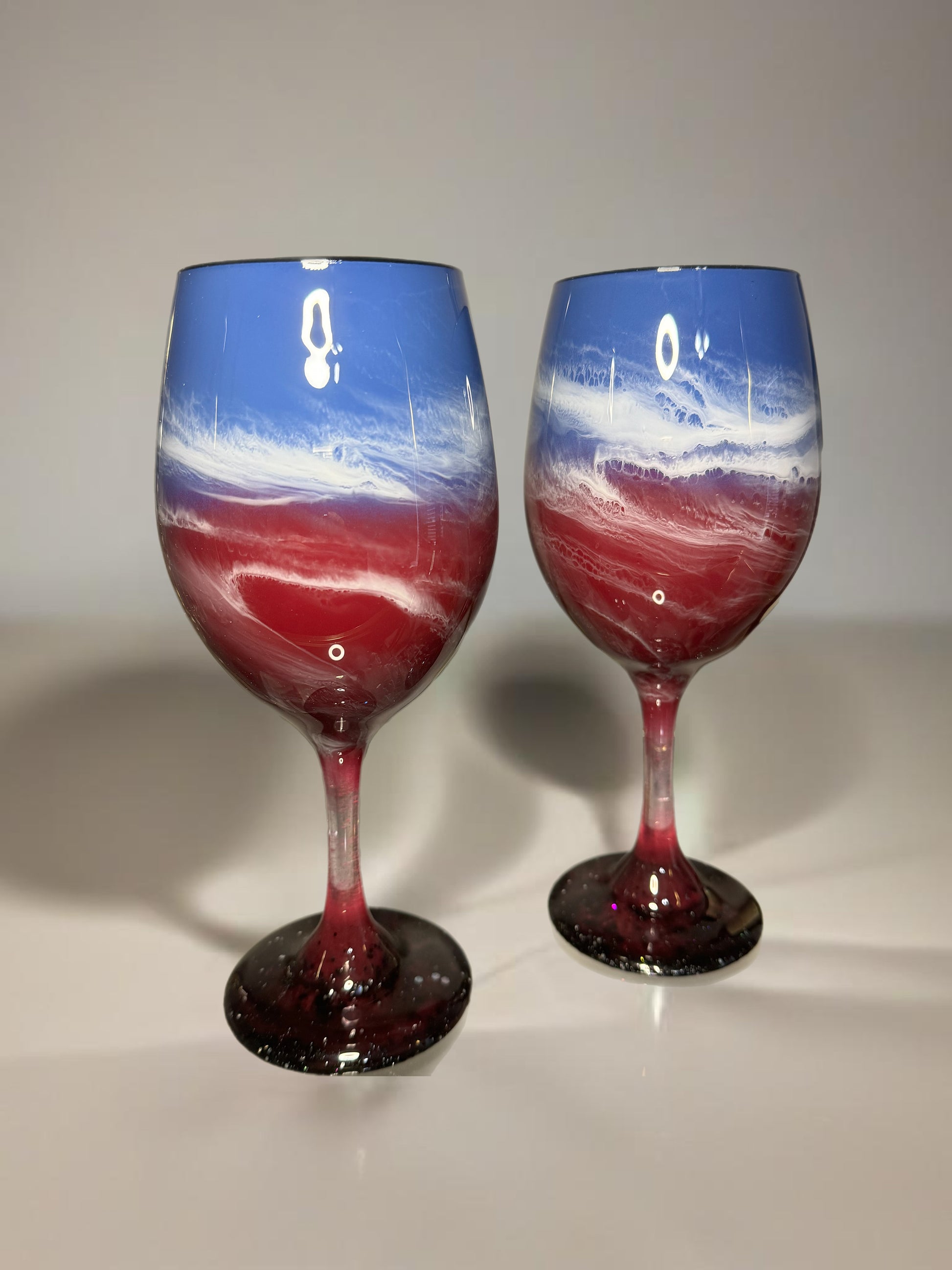 Red White & Blue Wine Glasses & Drinkware-Handmade