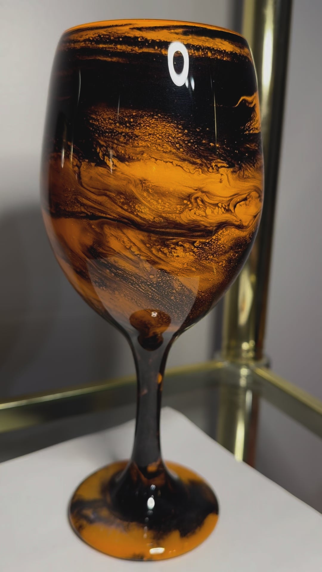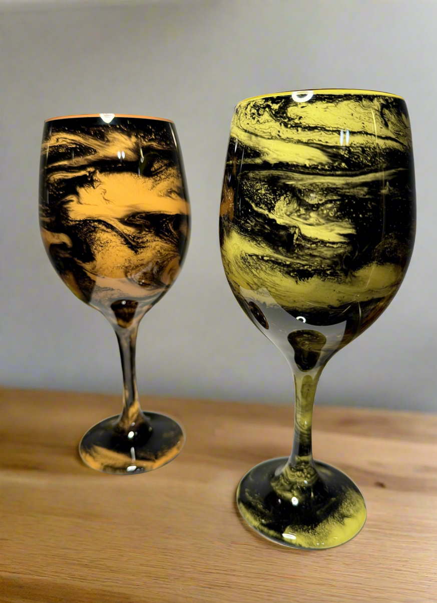 Orange/Blk or Yellow/Blk Wine Glass-Handmade