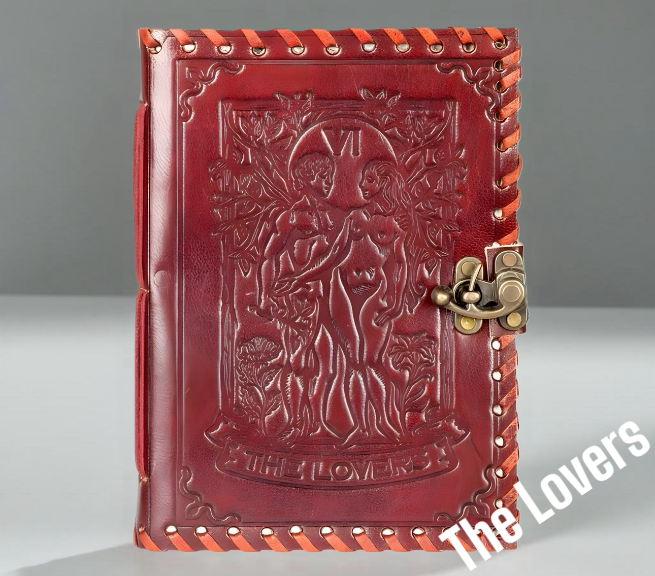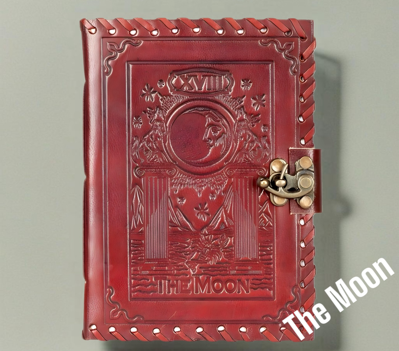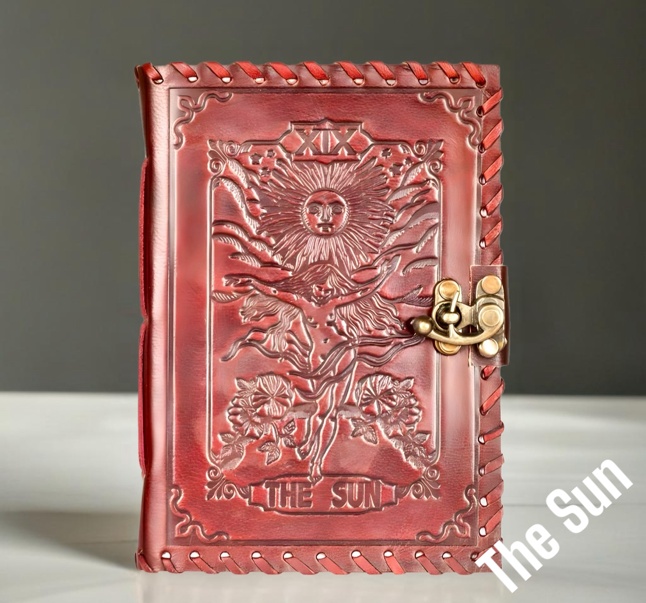 Expertly crafted, this 5"x 7" leather latched journal features intricate tarot card designs. Enhance your writing experience with its superior quality and unique design. Perfect for journaling, sketching, or jotting down notes, this journal is a must-have for those who appreciate both functionality and style.