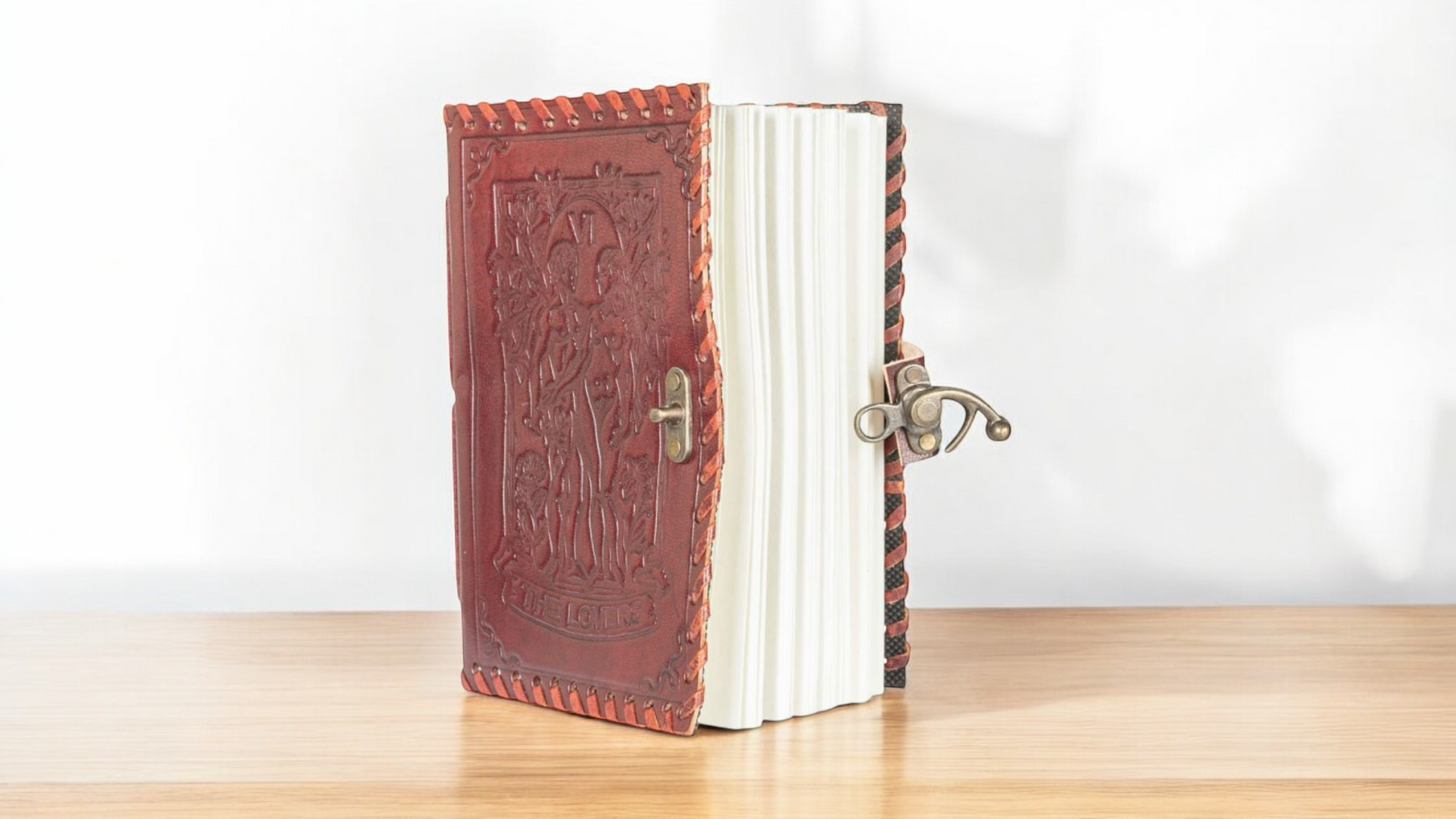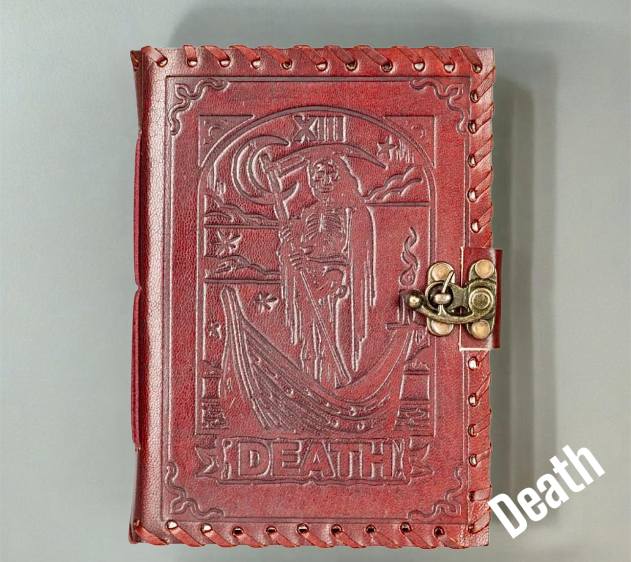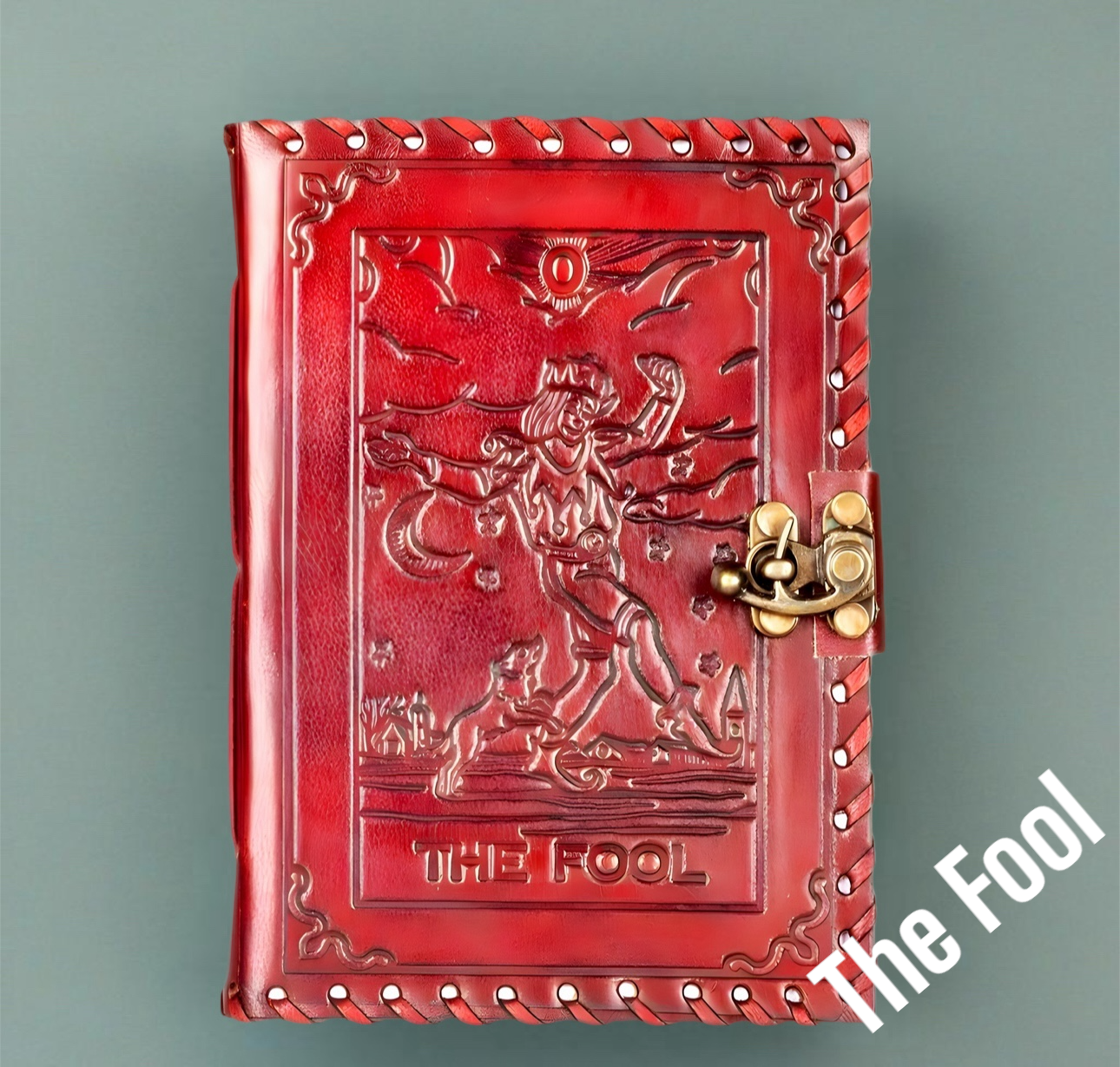 Expertly crafted, this 5"x 7" leather latched journal features intricate tarot card designs. Enhance your writing experience with its superior quality and unique design. Perfect for journaling, sketching, or jotting down notes, this journal is a must-have for those who appreciate both functionality and style.