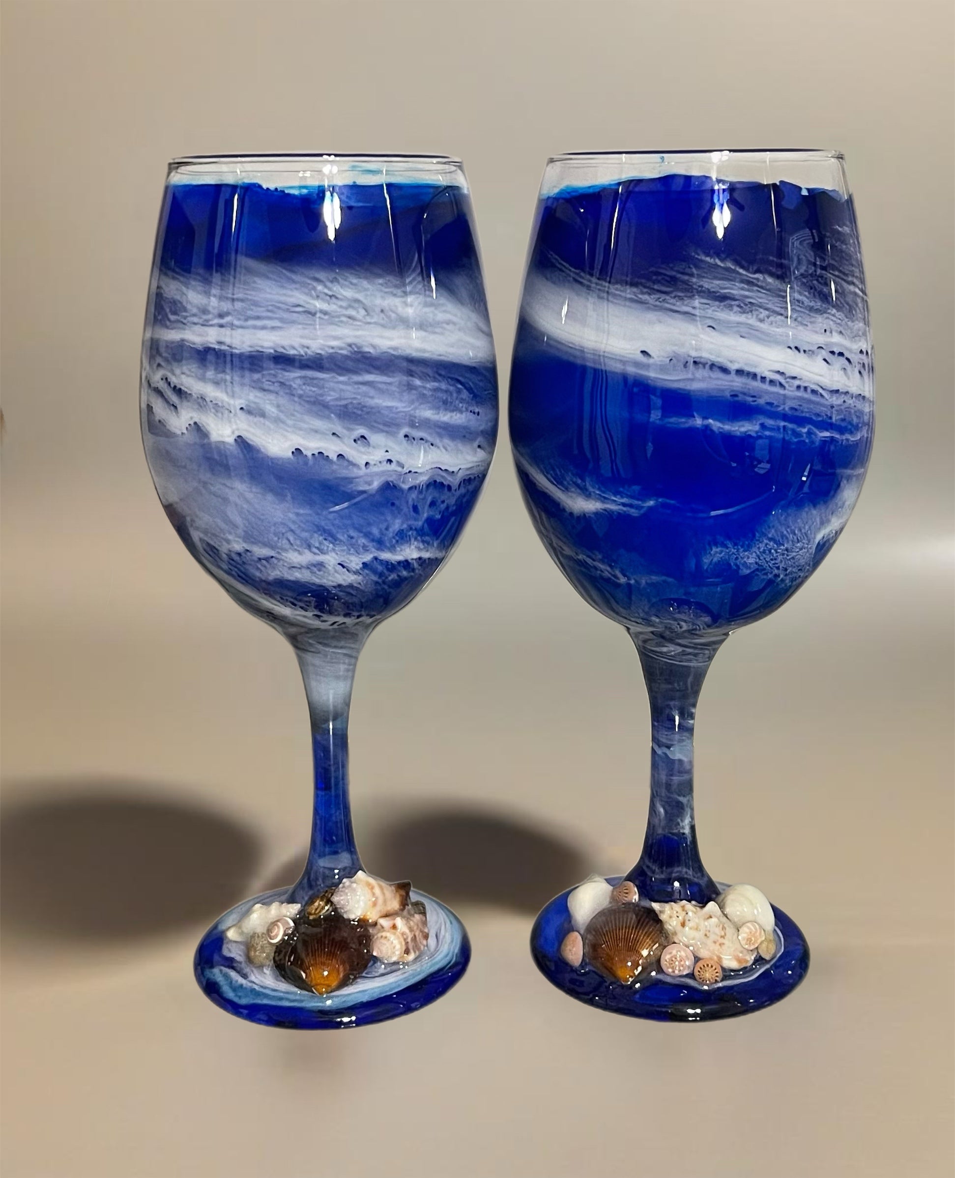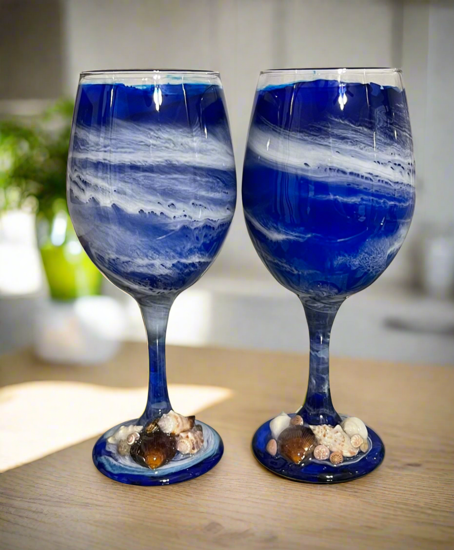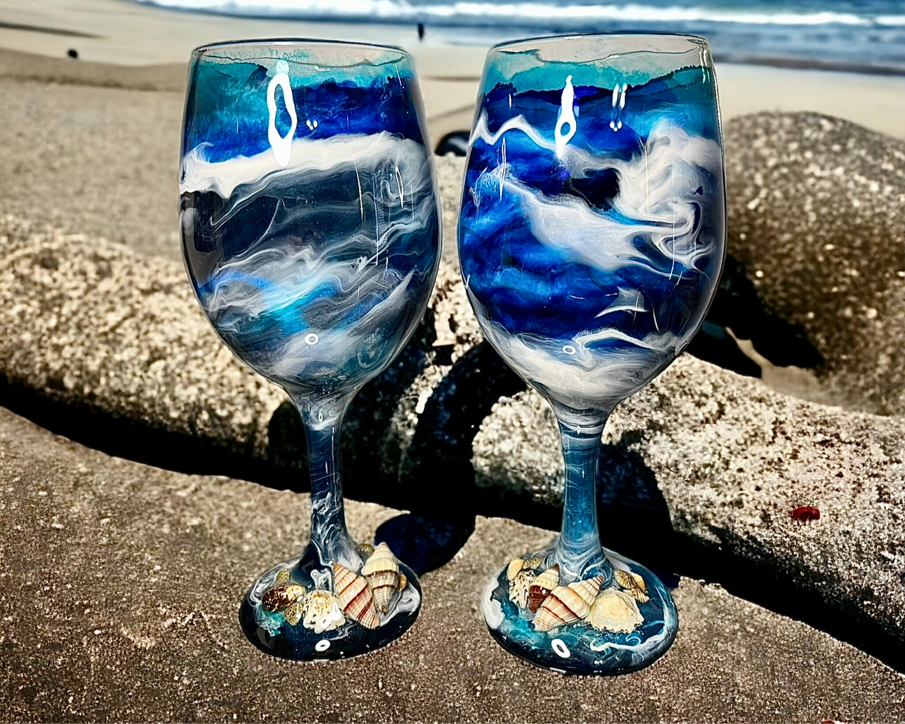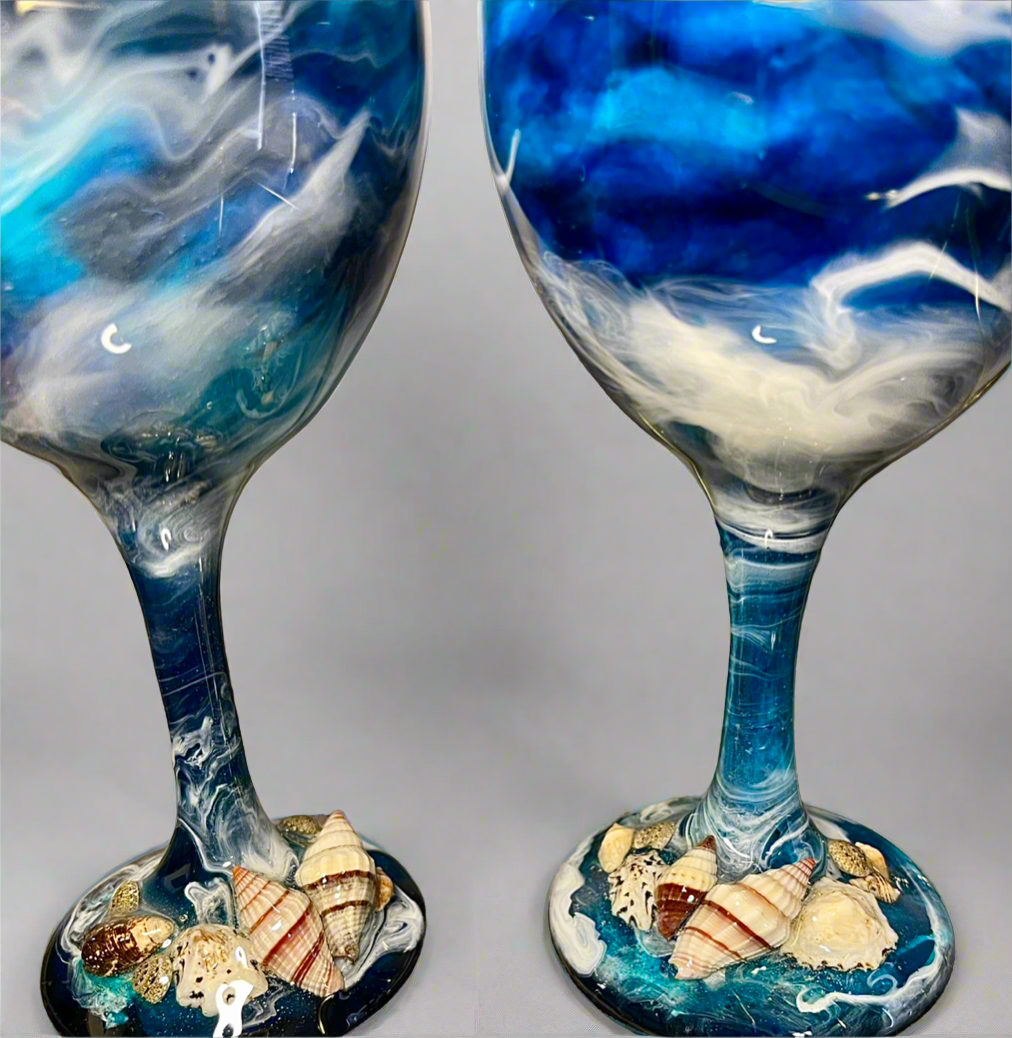 Ocean with Shells Wine Glasses and Drinkware-Handmade