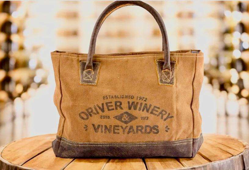The Oliver Winery Tote is a stylish and durable bag perfect for carrying anything needed on your next adventure in wine country. Made with high-quality materials for a sophisticated touch. Dimensions: 12.25" X 9.5" X 3.5" Straps are 12" long