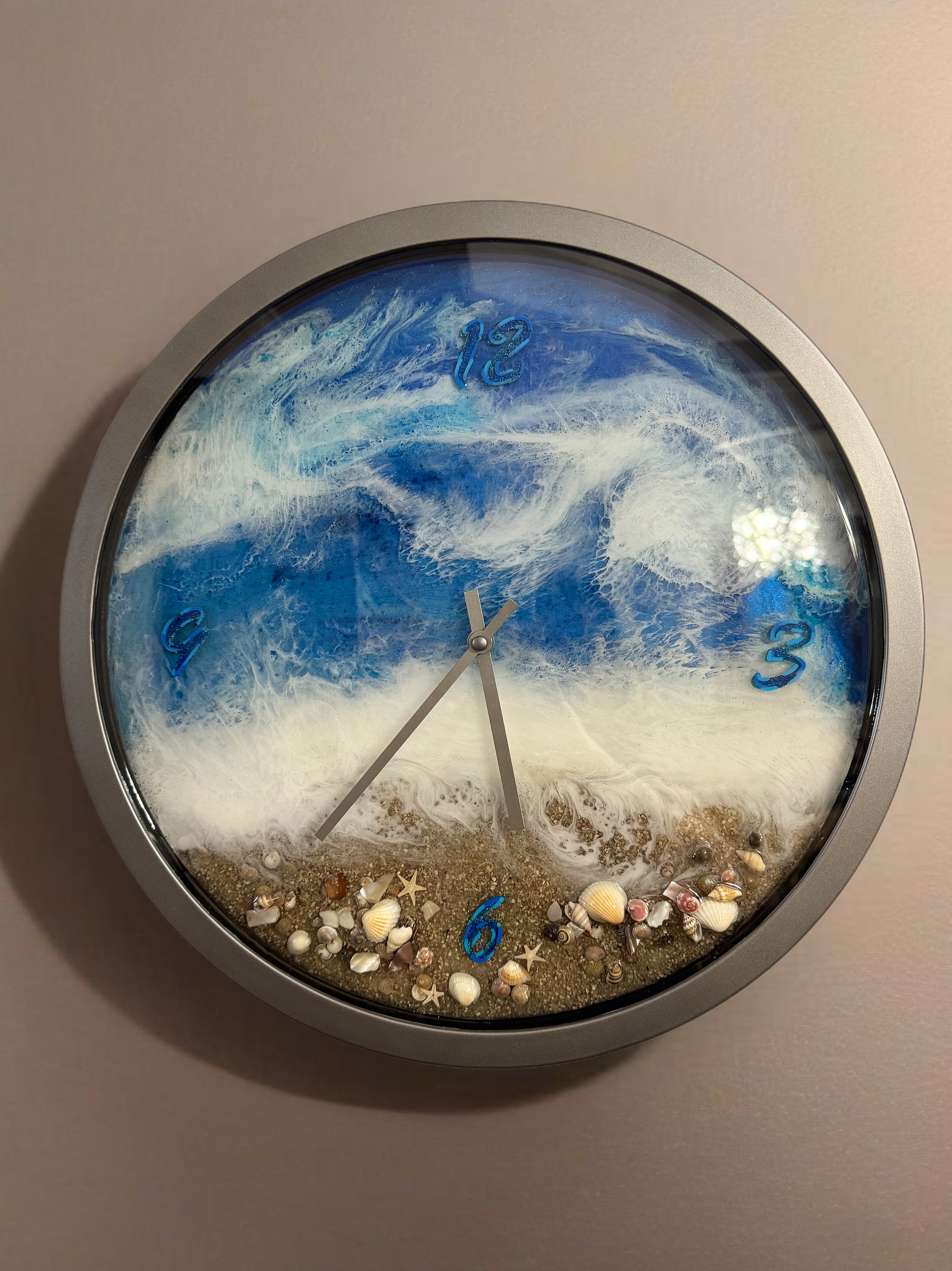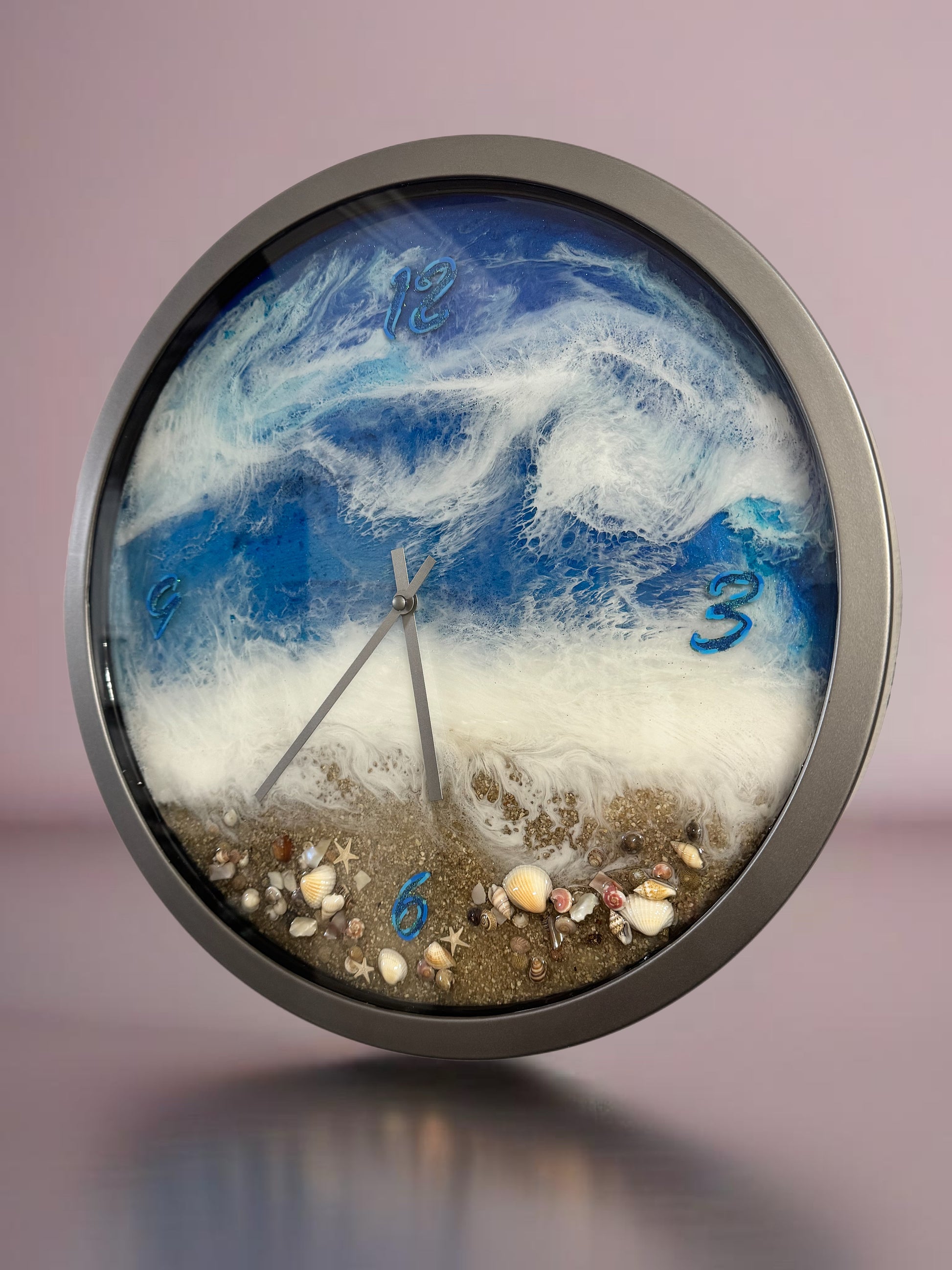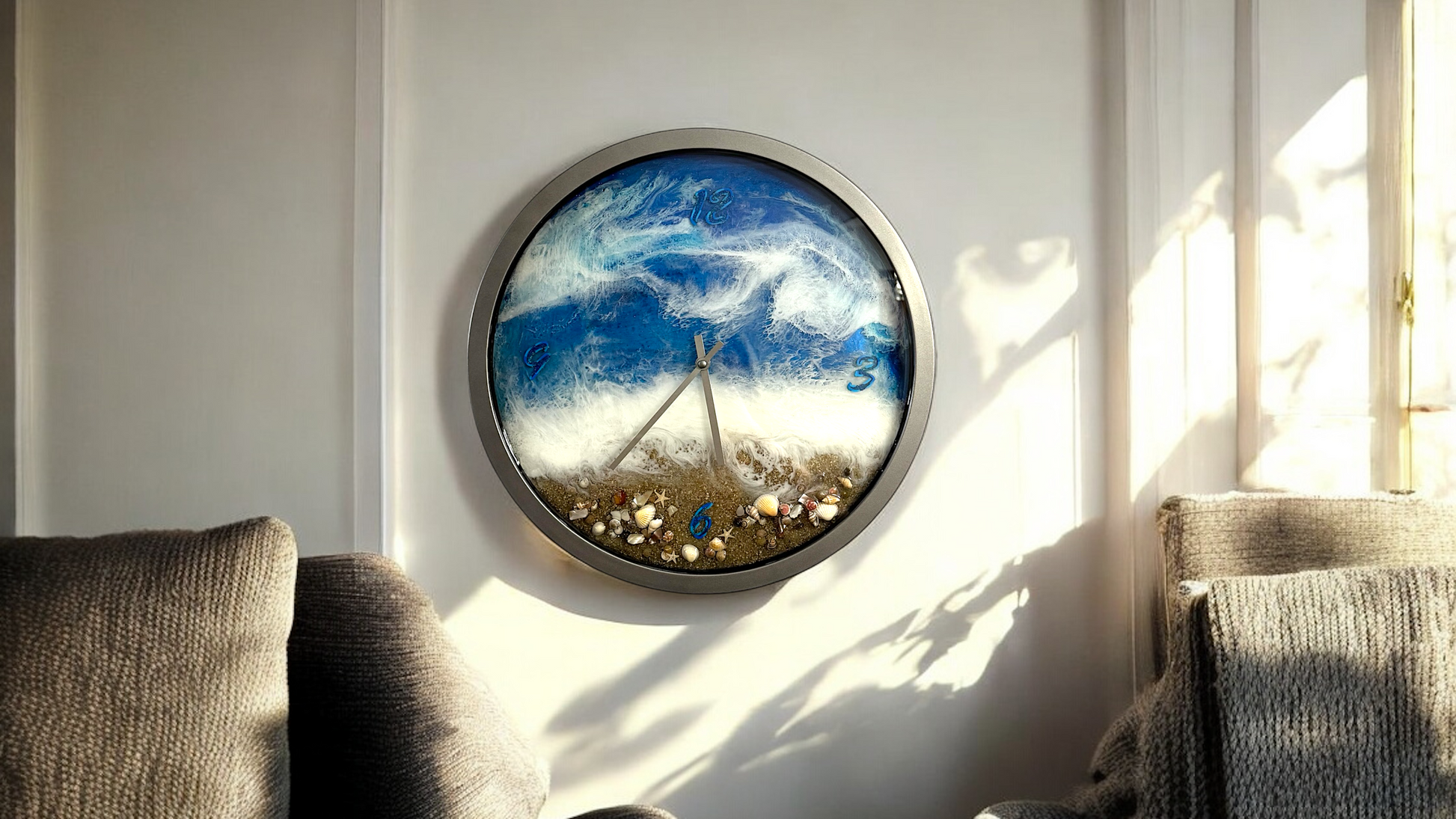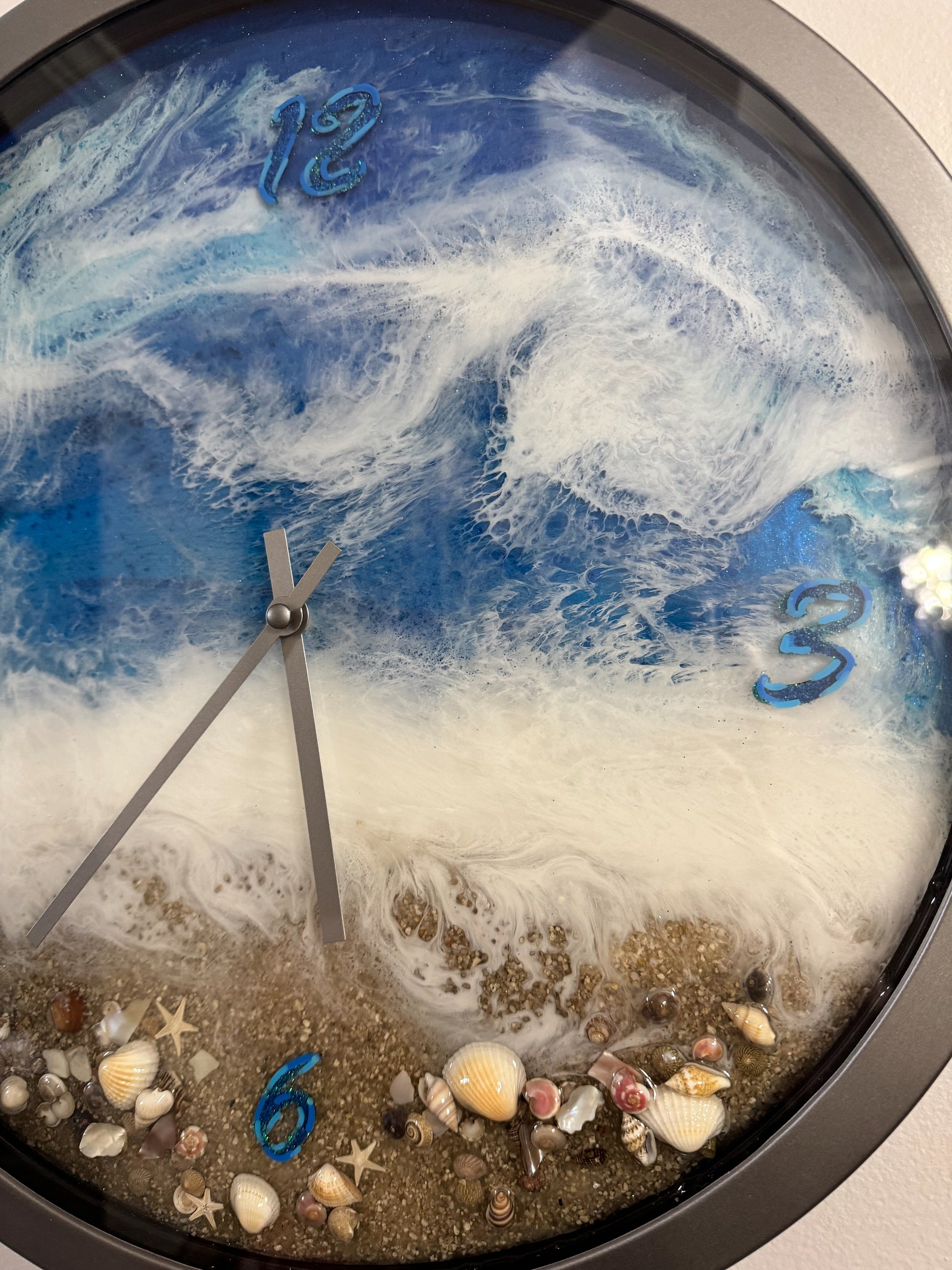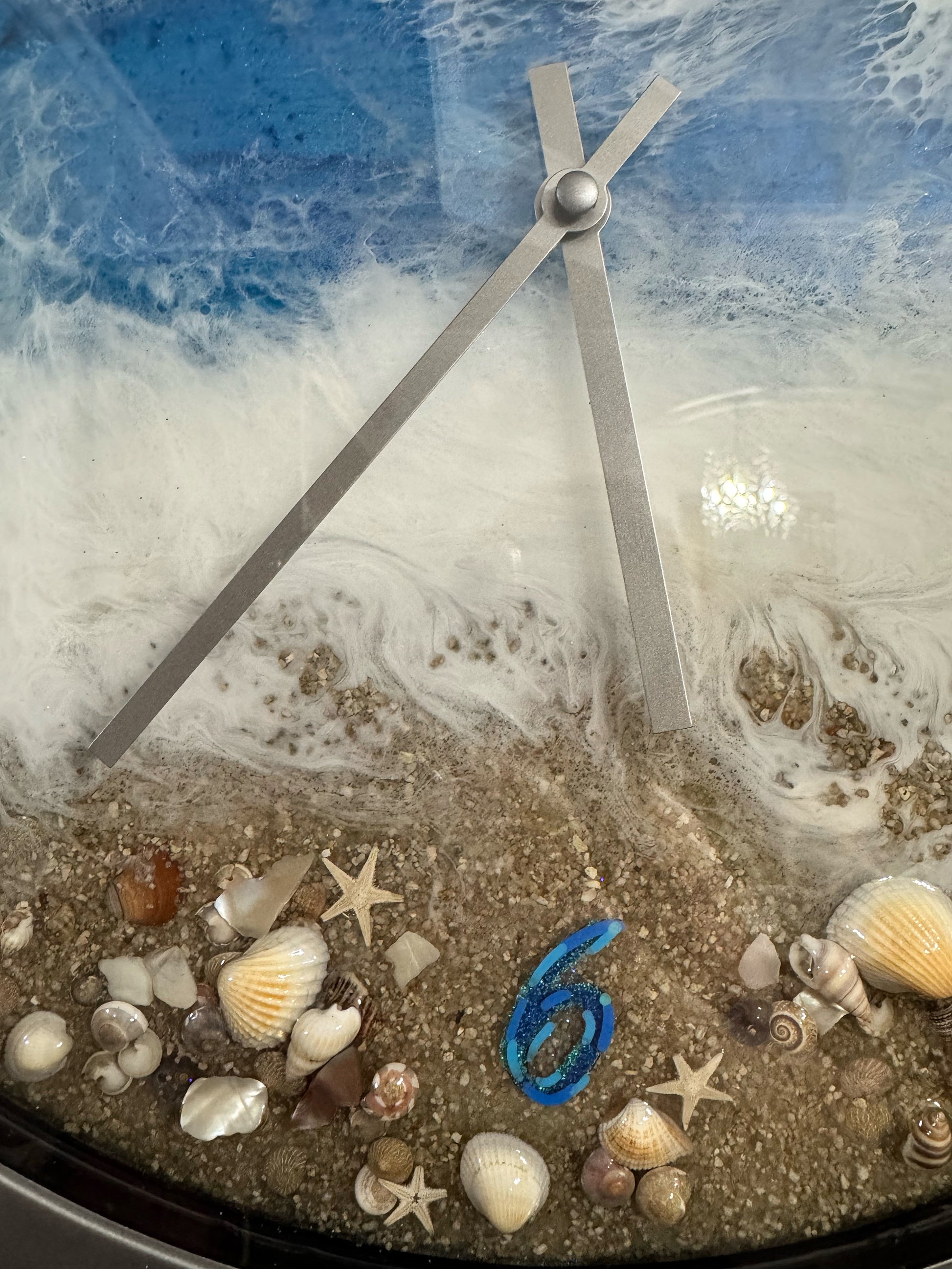 Expertly crafted with real sand shells and a charming seaside design, this 16in clock adds a touch of coastal elegance to any space. Handmade and battery operated, it's both functional and beautiful. Bring a piece of the beach into your home with this unique and timeless piece.