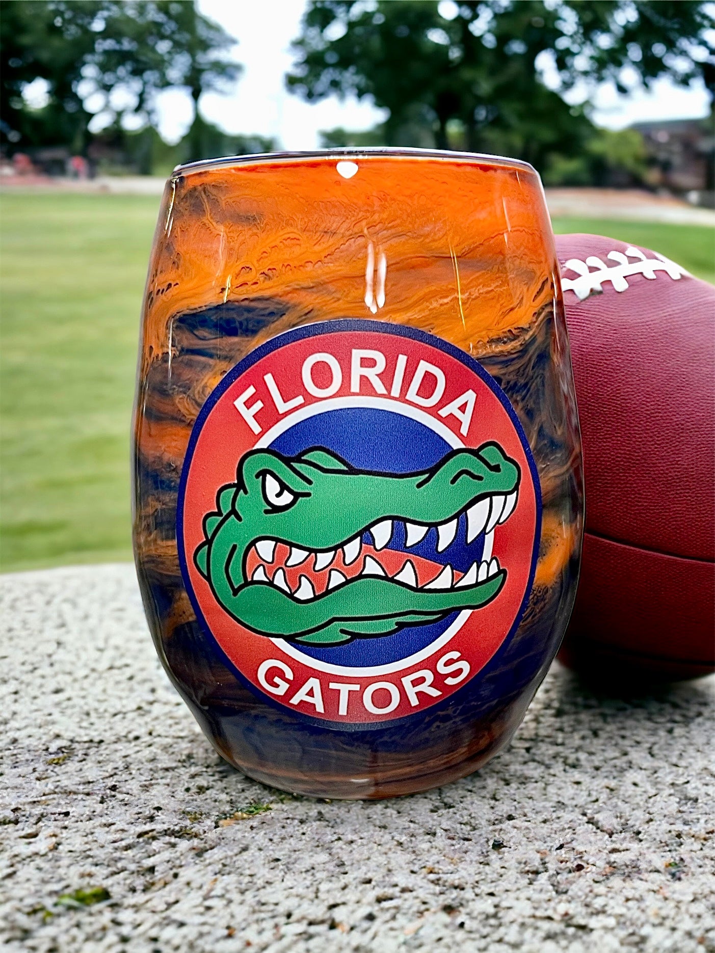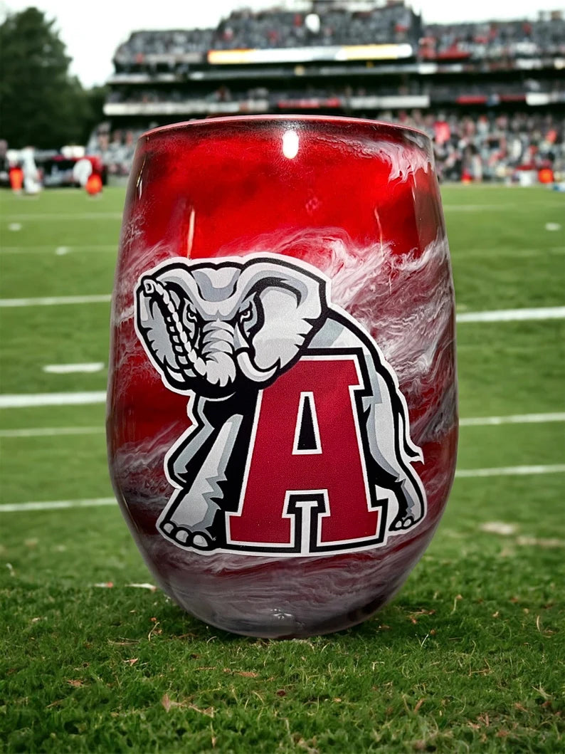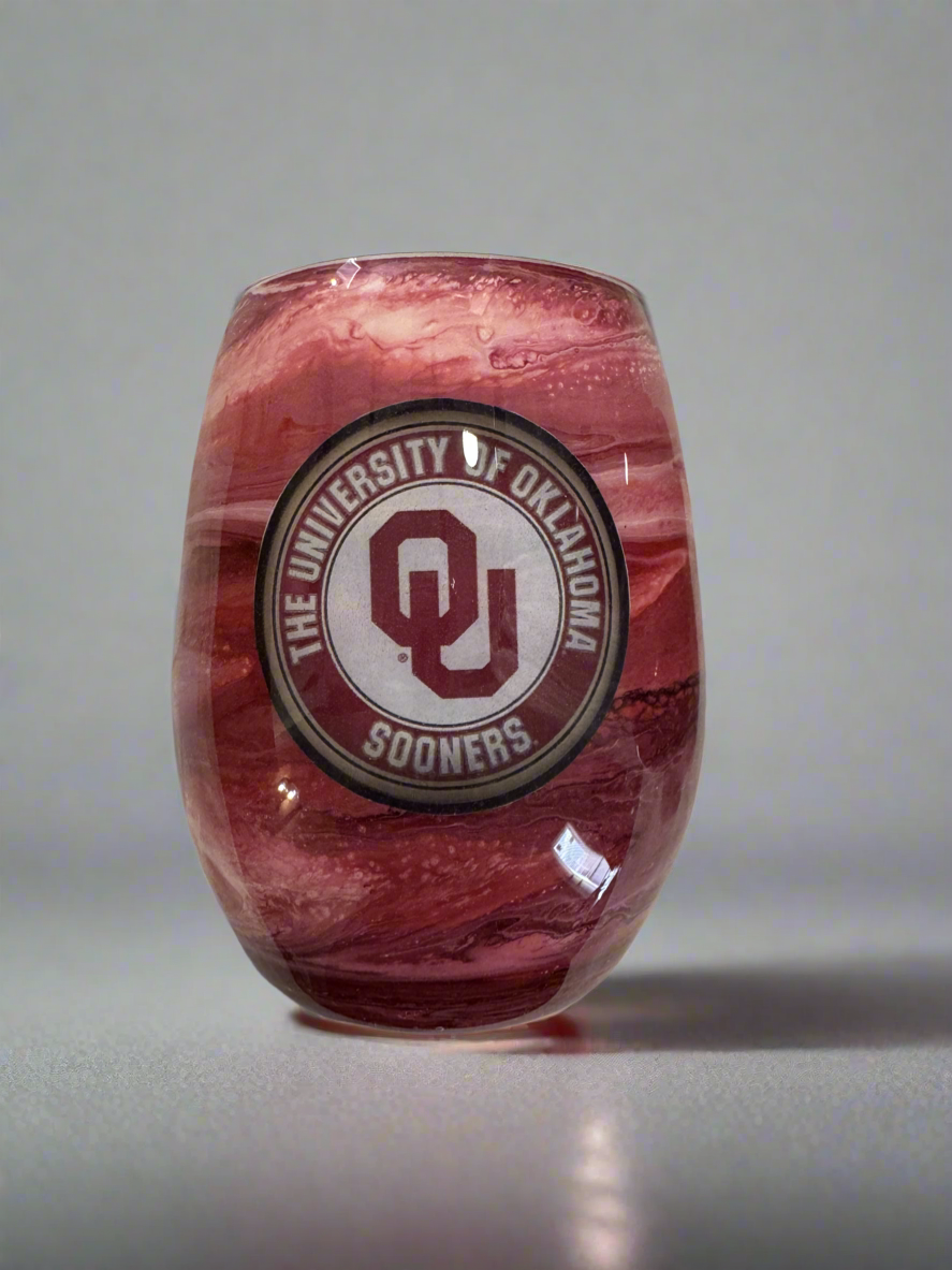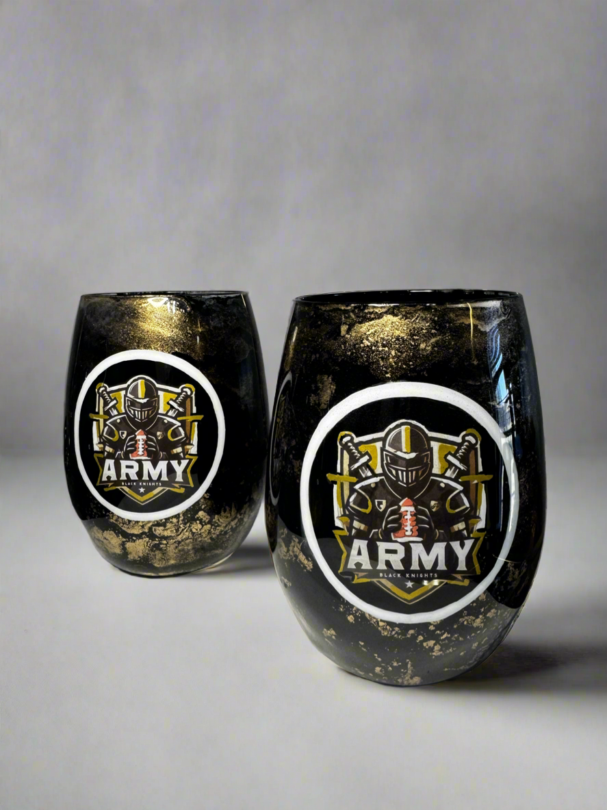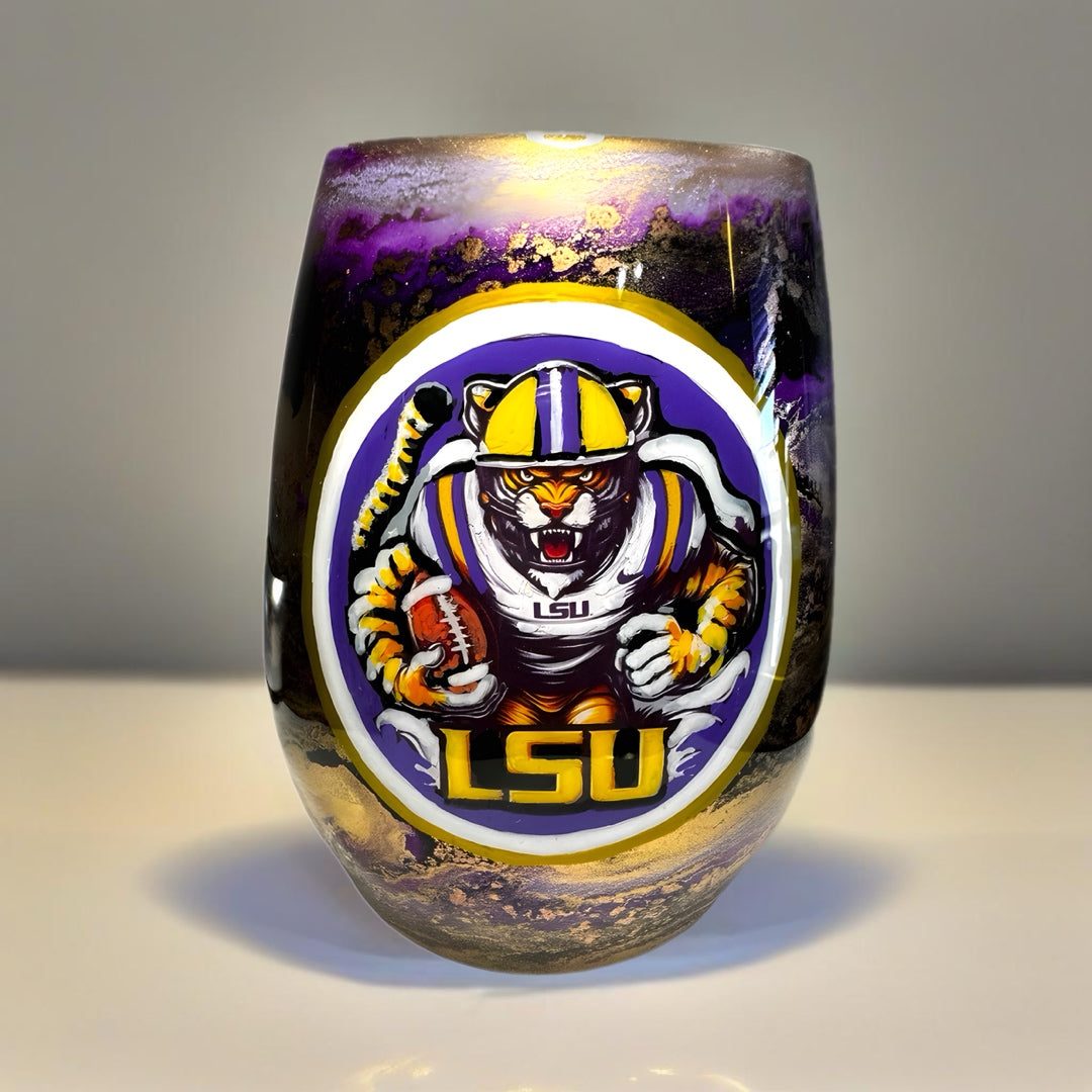 Each glass is individually hand-painted using various alcohol inks, mica or pigment pastes. No two glasses will be exactly alike. Glasses are made to order, so yours will look very similar to the glasses pictured, but indeed one-of-a-kind.